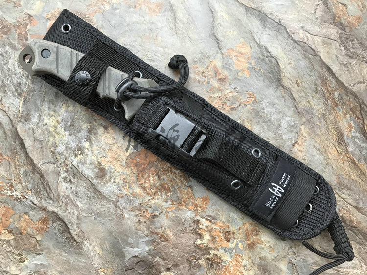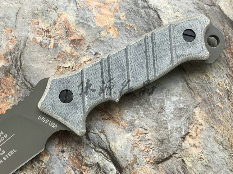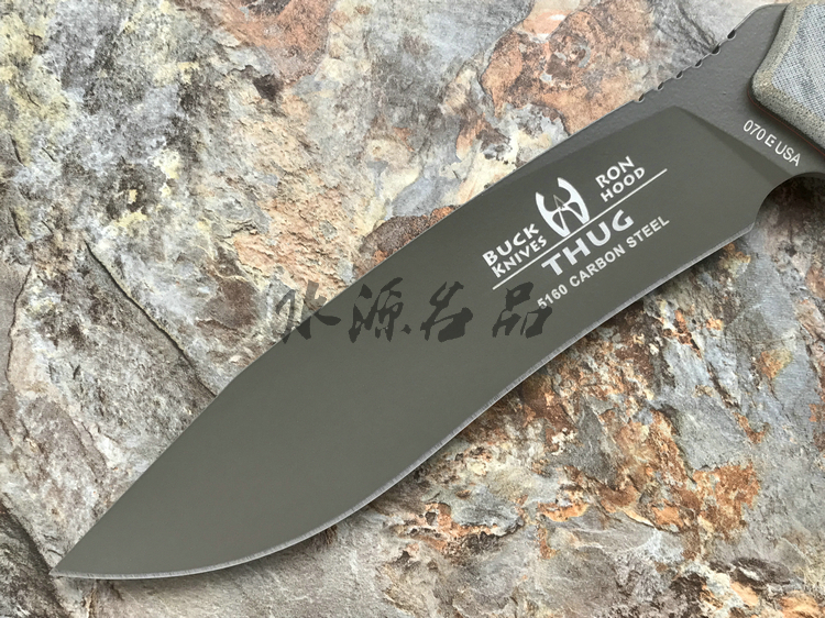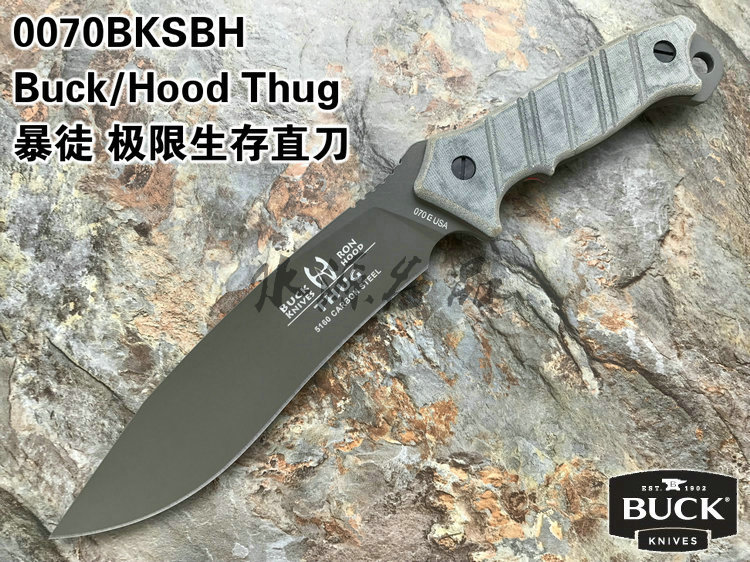 类 型: 直刃 型 号: 0070BKSBH-B 全 长: 330mm 刃 长: 178mm 刃 材: 5160 Carbon Steel 硬 度: 58-60HRC 表 面: 灰色涂层 刃 厚: 4.7mm 柄 长: 152mm 柄 材: 亚麻米卡塔 重 量: 329g 原产地: 美国 With the Hoodlum and Punk? always being in high demand, we've added the Thug to our Buck/Hood collection. Built with all the same features as the Hoodlum and Punk?, the Thug? serves as a mid-size survival knife to aid in extreme situations. Includes a M.O.L.L.E. sheath. 美国著名刃厂BUCK公司此款经典折刃众所皆知,风格古典高雅且传统的原创造形广受爱刃之人士喜爱,经典木柄结合黄铜材质历久弥新, 刃身采420HC高级不锈钢搭配高质感黑色皮套让您无论在户外狩猎、钓鱼亦或露营使用上皆可感受到在传统且简单设计外的绝佳使用流畅性。 BUCK刃是北美制刃业中最出名的,以高品质而闻名。第一把BUCK刃生产于1902年,是年轻的刃匠学徒Hoyt Buck设计的。通过对钢材的回火处理从而使刃刃能够长久的保持锋利。Hoyt每把刃都是手工刃,他用废旧的锉刃做原材料。在二战期间,他做了很多刃来帮助北美的军队。在战争结束后,他去到圣地亚哥,和他的大儿子AL BUCK在1947年创办了H.H. Buck & Son公司。Hoyt去世于1949年,他的大儿子Al 接手领导公司度过了又一个关键的一年。 1902年Hoyt Buck设计制造出第一把BUCK刃,从那时开始,BUCK刃就开始设计CrossLock系列的刃,并在1994年获得了刃具年度大奖在1963年,Al BUCK设计的BUCK110可折叠猎刃引起了刃界工业的大革命。buck刃都是终身保修的,它的刃材使用美洲改造的不锈钢,高碳,高铬,使它的硬度保持在57-58HRC,并保持锋利的刃刃。经过多年努力,BUCK始终是大家公认的品牌。在美国人的心目中BUCK占有不可替代的主导地位,就像在中国提及“王麻子”刃剪一样出名,其经典产品110,119型猎刃是很多刃具设计制造的模坂和参考对象。钢材硬度高于同等类型的刃具,其425M钢材甚至硬于某些品牌的ATS-34钢材。 由于BUCK公司的冶炼技术领先超前,很多的厂商也与其联手开发高科技产品,著名的菲罗比斯公司设计的美军M9多用途刺刃就是由BUCK公司OEM出品的。2000年,BUCK公司与STRIDER公司的结晶产品BUCK880B系列折刃,在世界折刃市场也掀起了不小的波澜!美国BUCK公司在海外无分厂,全都在美国基地生产。
