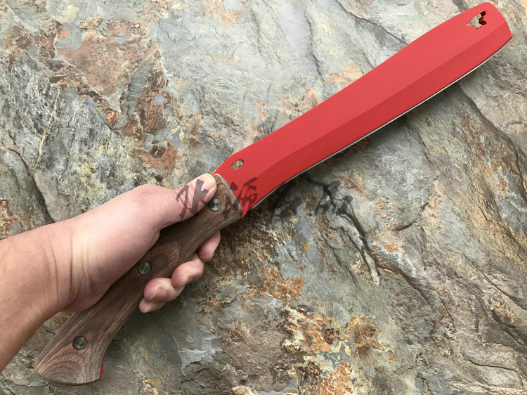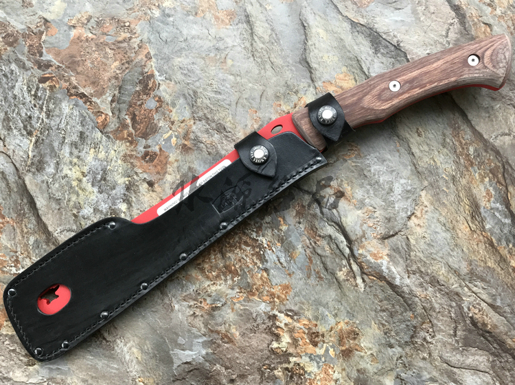 此款Compadre教父系列直刃设计和制作都是充分考虑到户外运动爱好者,每个型号都是全龙骨式结构,锛式刃头一体式结构让刃身强度十足,足以应对最恶劣的生存环境,刃身采用5160钢制成,表面采用红色粉末图层处理,有效消除刃面炫光,并可以提高刃身的抗锈蚀和耐磨损性能。刃根区域印有buck标志、产地信息。 手柄使用复古色彩的胡桃木复合柄材Dymondwood制成,这是一种将极纤薄的硬木进行冲压,加工而成的层叠木材。性能更为稳定,受湿度和温度的影响更微小。尾部带有系绳孔,可穿系绳结、头珠类的刃具饰品。此外,该产品配备黑色皮带刃鞘,带有皮带环,可佩戴在腰部。