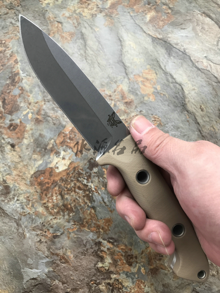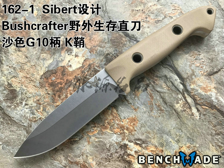 这把蝴蝶162 Bushcrafter是由Shane Siebert设计的野外生存用固定直刃。S30V不锈钢刃身硬度可达58-60HRC,水滴头刃身和精心的平磨让刃具拥有出色的切削能力。宽阔的刃身和极厚的刃背为刃具性能提供了极大的保障,在执行较重型的切削或劈砍任务时不会出现问题。刃身外侧进行抛光处理,一侧印有蝴蝶标识和产品型号,一侧印有钢材标号和Siebert设计字样。