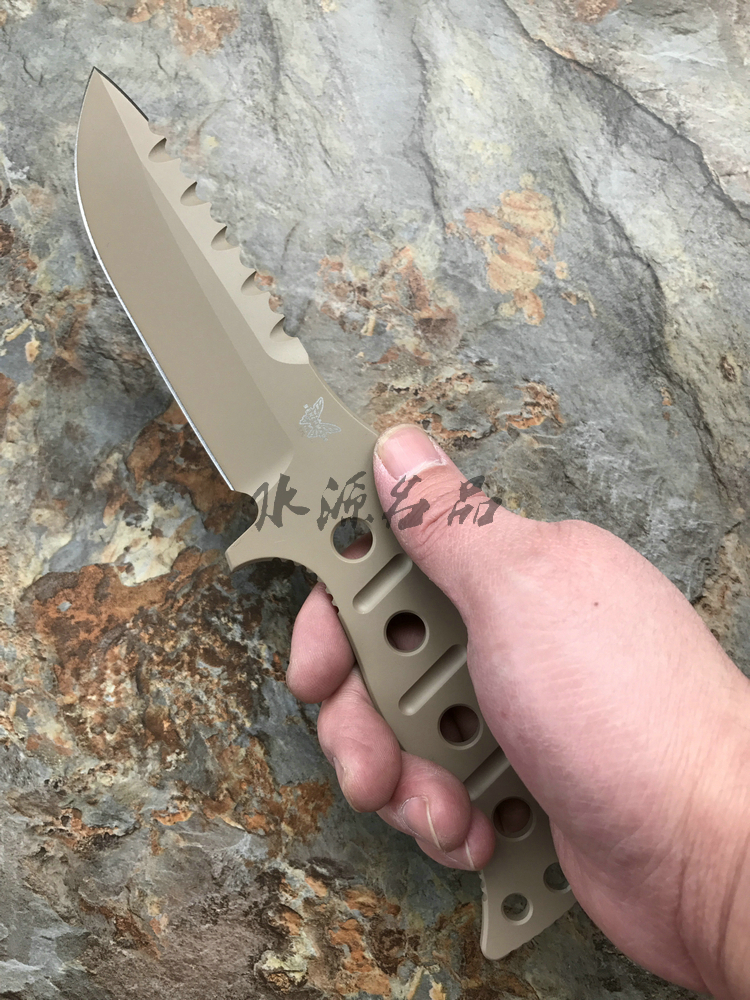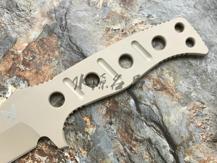 蝴蝶的Adamas系列刃具由著名的刃具设计师Shane Sibert为全美警务人员设计的战斗直刃。375SN使用强壮的D2工具钢制作宽阔水滴头刃身,平磨手法赋予了刃具更强大的切削能力。为了应对更艰难的困境,这款直刃双侧开刃,刃背前端开锋和锋利的刃尖让刃具拥有出色的穿刺能力,而后半部的齿刃则可以用来执行重型切割任务。刃身采用黑色涂层处理,一侧印有蝴蝶标志,一侧印有Sibert设计标识。 一体式的刃柄采用镂空设计,不仅有效的减轻刃具重量,也可以使用佩赠的伞绳进行绑缚成为伞绳柄直刃。随刃佩赠伞绳,Kydex刃鞘和单兵携行装置,这些多功能的承载工具可以让使用者更好的佩戴携行。