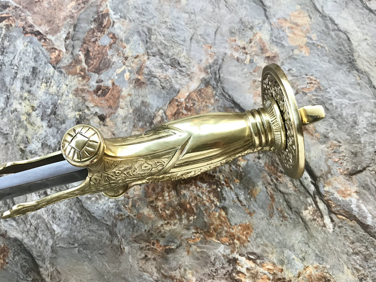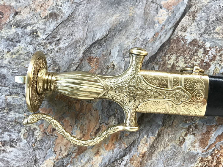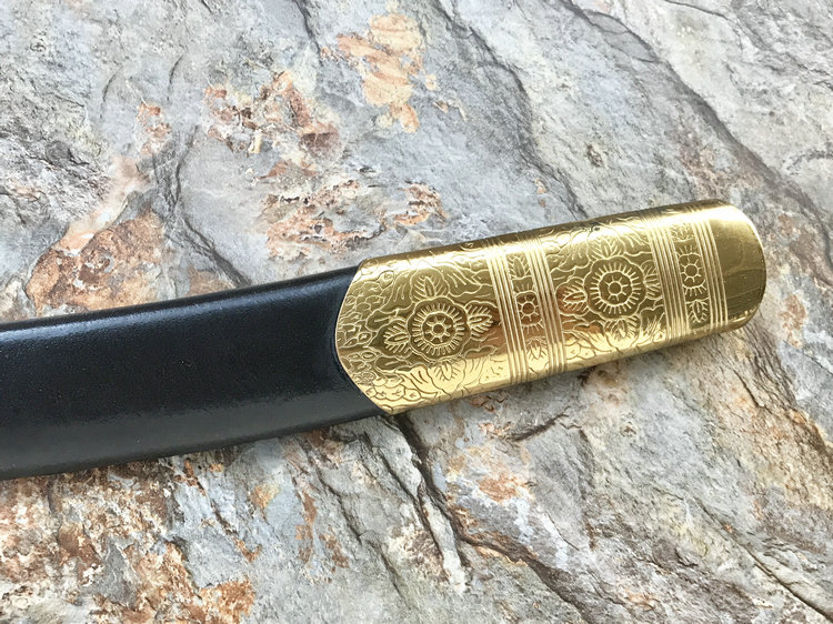 刀鞘:实木+羊皮鞘+不黄铜雕刻金具