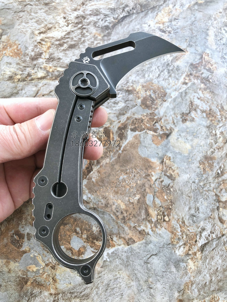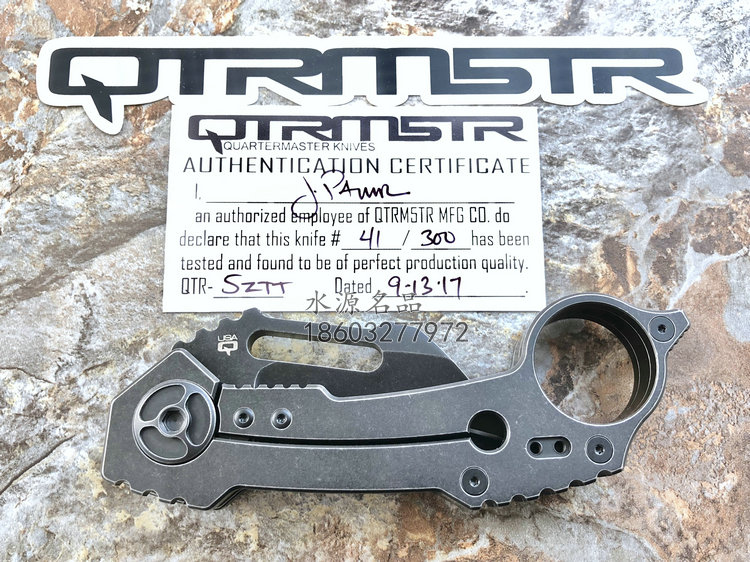 类 型: 折刃 型 号:QTR5ZTT全 长: 151mm 刃 长:55mm闭合长度: 123mm 刃 材: S35VN 硬 度: 59-60HRC 表 面: 黑色沧桑石洗 刃 厚: 6mm 柄 材: 钛合金衬锁 镶嵌碳纤维 锁 型: 线锁 重 量:147g 原产地: 美国