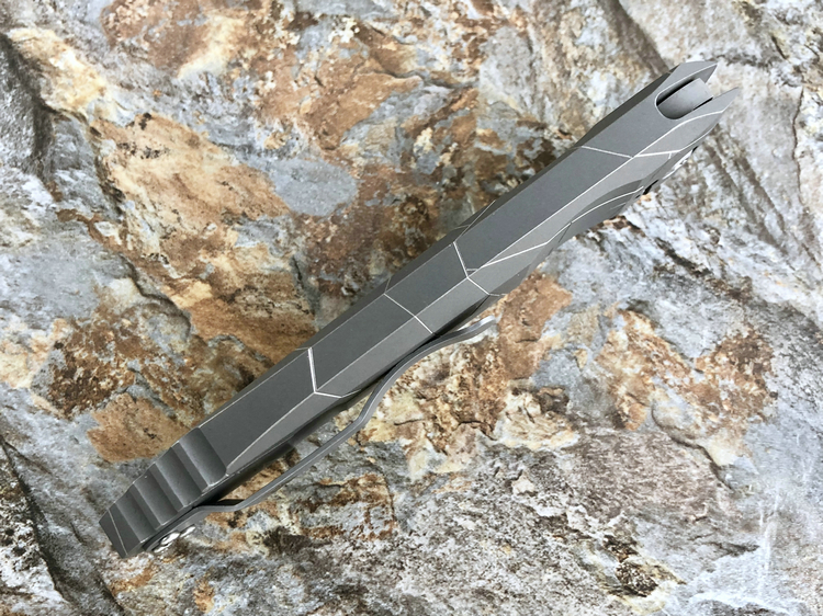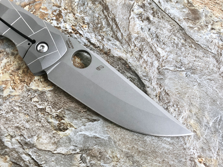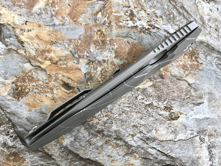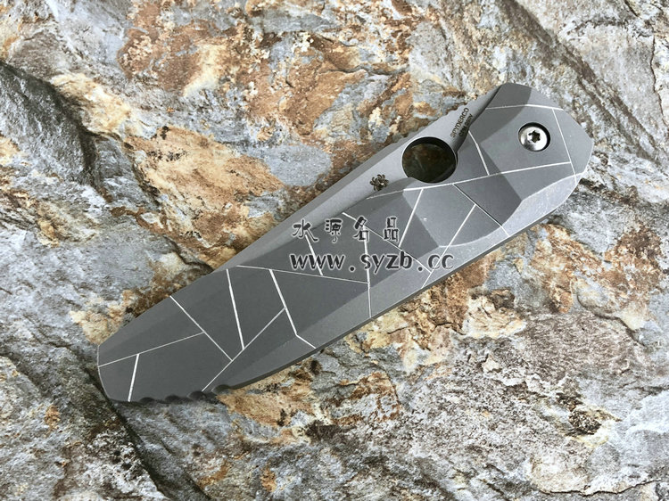 Peter Rassenti著名刀匠其手工定制刀非常火爆,C199TIP涅槃完全复刻了Peter Rassenti的手工版本,该款刀的手工版原型荣获Blade杂志“年度进口刀奖” 涅槃最鲜明的特征就是它的整体处理,一整块钛精细加工出的一体手柄每一个细节都处理的非常到位,采用克里斯.里夫一体锁 (R.I.L.) 机制。美丽的轮廓符合人体工程学,手柄磨砂处理,美丽的几何图案CNC完成。
