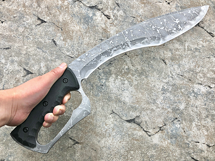 全 长: 472mm刃 长: 309mm刃 材: OU-31硬 度: 62HRC刃 厚: 8mm重 量:1225g产 地: 日本