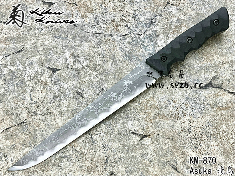 类 型: 直刀全 长: 430mm刃 长: 280mm刃 材: OU-31硬 度: 62HRC刃 宽: 39mm刃 厚: 9.5mm柄 材:米卡塔重 量:831g 含鞘928g产 地: 日本