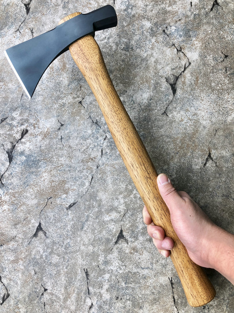 类 型: 直刀全长:446mm斧头长:168mm斧刃长:75.5mm最厚处:25mm刃材:Starrett 496-01 高碳工具钢硬度:62HRC重量:668g产地:美国 提起 Kevin McClung “凯文-麦克朗”先生,和他的品牌Mad dog-(MDK)疯狗战术刀的鼎鼎大名在业界无人不晓。由于产品近乎完美的性能和年产量极低的稀缺性,全球战术刀具的爱好者都以拥有它为终极目标!凯文的工作室成立于1980年,位于美国的亚利桑那州,品牌的闻名是源自一次刀具的测试。1992年美国西海岸警卫队和海豹部队联合举行了一次军事演习(West Coast SEALs)同时也做了一次武器装备上的极端测试。在刀具当中测试中很多美国的大品牌都参与进来,但是只有Maddog表现最佳。很多刀具都有各式各样的残破,唯独疯狗通过测试后完整如初。当时的型号就是公司最知名的型号ATAK。同时它也是美国海军(U.S Navy Sole Source Justification) 刀具备测试的第一名。所有Mad Dog刀子及刀鞘系统都是以手工制作而成。Mad Dog钢材刃都是使用一种叫Starrett 496-O1的高碳工具钢,最独特的是它的热处理方式,先经过硬化(Hardened)然后再选择性回火(selectively tempered)而成。每个部分的热处理都不一样,刀锋部分的硬度是63-67HRC,在刀背部分则是50-55HRC,刃尖部分是59-61HRC,手柄部分48-52HRC,整刀分为4个部分处理,这种科学的方法成为分段热处理。这种方法可以使刀具既有很高的硬度又有较强的韧性,劈砍,穿刺,切割,撬砸等,能适应各种高强度工作。它的手柄符合人体工程学设计,把握极其舒适称手。食指凹槽让使用者即使看不见也能凭手感找到握刃的位置。材料使用特殊的玻璃纤维与环氧基树脂合成来做刀的握柄。此种特殊材质每一平方英寸可承受79000磅的压力(约3600公斤),可以轻易地承受0.45口径子弹的冲击。因此Mad Dog刀的握柄就算很严苛的使用也不会造成损害。此种握柄材质同时也提供了极好的绝缘,每0.001吋可承受1000伏特的电压,因而可以保护持刀者不会在使用刀具时遭受电击。另外这种握柄材质也几乎不受化学物质的渗透及侵蚀。凯文先生所有Mad Dog刀子及刀鞘系统都是以手工制作而成。没有工厂,没有学员,甚至没有帮手,全部都是凯文先生亲力亲为,由于年事已高,致使它的东西存世量非常少。他不做任何广告,也不做商业推广。很多知名的刀厂和商家,要求与他合作,出品各式各样的版本,都被他拒绝了,凯文先生的理由很简单,我要保持自己的风格,做我自己认为完美的刀,还要保证每一把刀的质量。凭着对刀具的热爱和执着,加上几十年的专业经验,堪称战术刀之王。完美的产品加上稀缺的行情,令疯狗战术刀成为了每个爱刀人士的梦想!