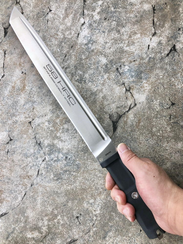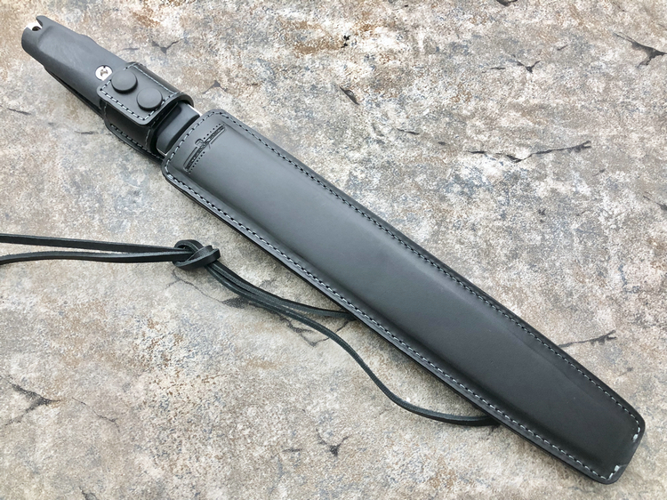 类 型: 直刀全长:433mm刃长:301mm刃厚:6.35mm刃宽:35mm刃材:N690硬度:58HRC重量:343g含鞘561g刀鞘:皮鞘产地:意大利