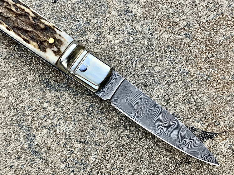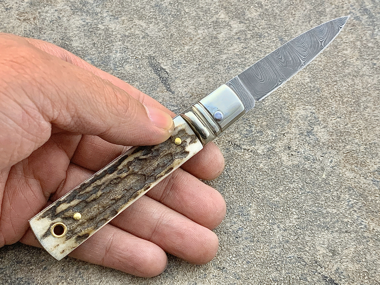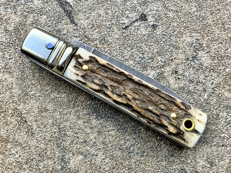 简单描述: 意大利AKC 55015CDAM 鹿角柄 大马士革刃侧跳