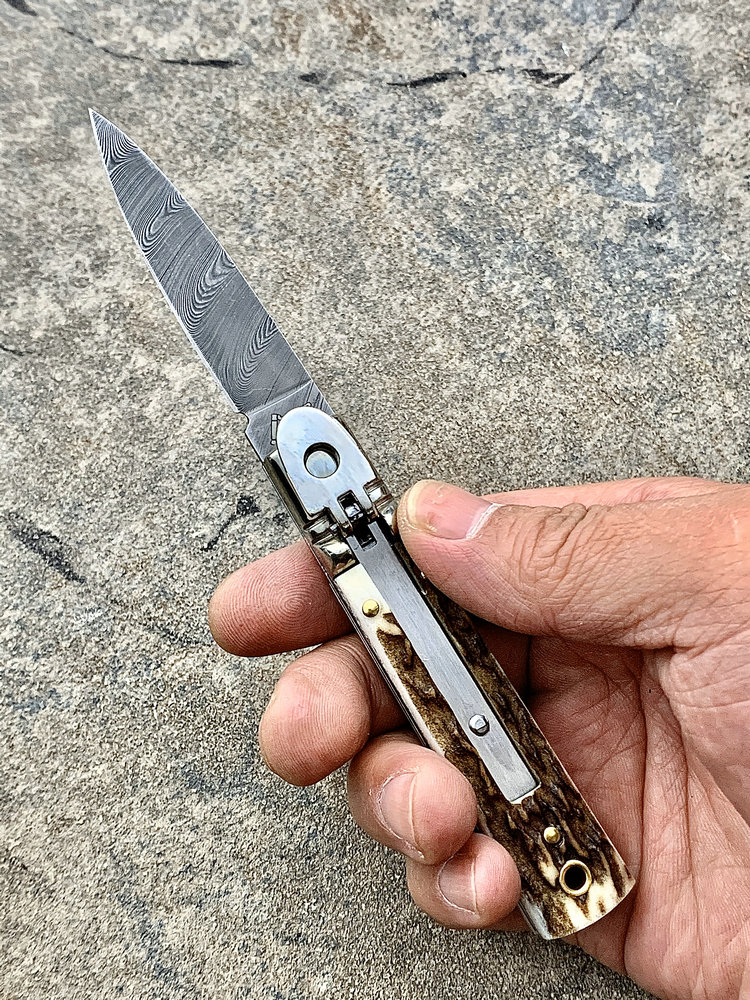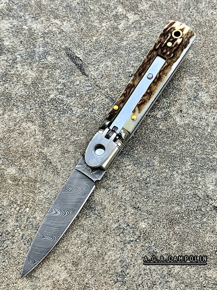 意大利AKC 55015CDAM 鹿角柄 大马士革刃侧跳 (暂无现货)