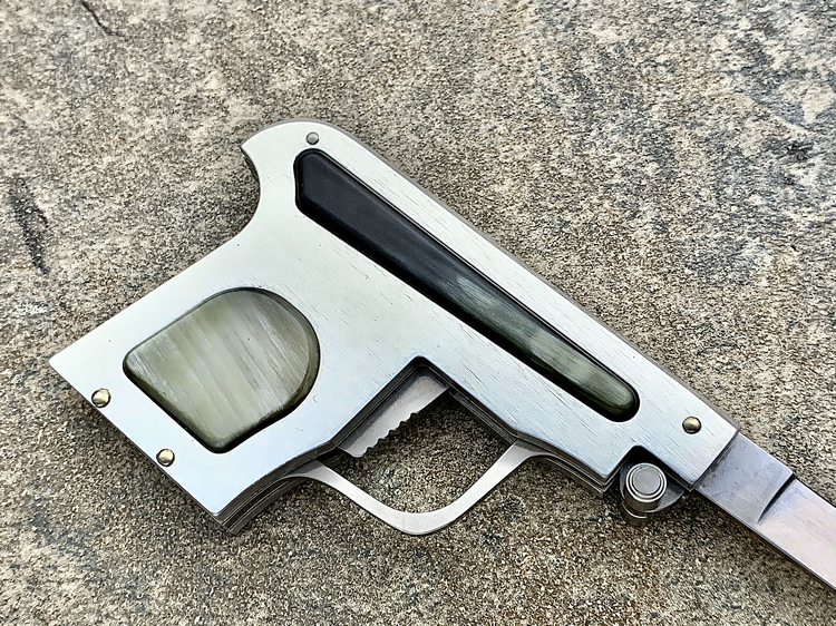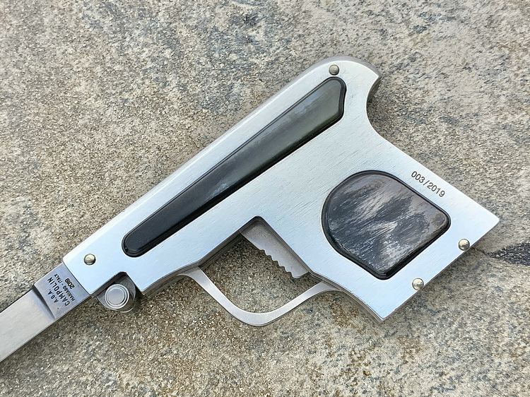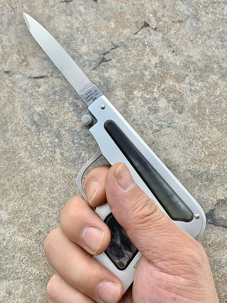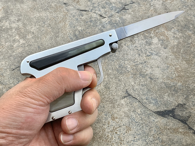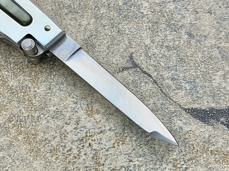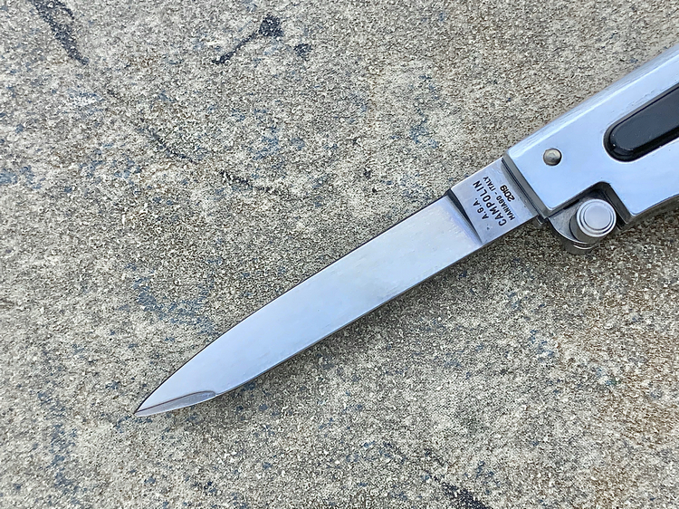 全长:166mm 刃长:71.5mm 刃厚:3mm 刃材:440C 硬度:59HRC 闭合:95mm 重量:162g 老安杰洛·坎波林(Angelo Campolin Sr. )1923年出生于意大利的马尼亚戈(Maniago)。二战前,他致力于完善他的制刀技术,并在这个时候制作了他的第一把刀片。战后,1947年,他创办了自己的公司,制作了30支标有“安杰洛·坎波林”的细高跟鞋(经典意大利侧跳)。虽然路程很远,他还是骑自行车去威尼斯卖。几年后,他开始与毛罗马里奥(Mauro Mario)建立合作关系,后者为许多美国进口商制造刀具,如Rosco、C.G.刀具、B.Svoboda、C.C.C刀具和其他美国市场刀具。而且,威尼斯和的里雅斯特的游客们也为这个“”讨厌“”的玩具而疯狂!安吉洛为38厘米和45厘米的大尺寸高跟鞋制作了工具。起初,这些是撬锁细高跟鞋,后来改为旋转垫片样式。在二战后的时代,坎波林是唯一一家生产这种尺寸的工厂。其他尺寸过去和现在都是由其他制造商生产的。20世纪60年代,他开始引入其他机制,包括锁回式。起初,这些都是用在切刀狩猎刀,然后也有一些细高跟鞋。它成为最流行的自动折叠猎刀。 20世纪70年代,安吉洛的儿子詹尼(Gianni ))开始在这家公司工作,他们专门为位于德国索林根的罗伯特·克拉斯公司(Robert Klaas company)折叠猎刀和手工折叠高跟鞋,上面有他们的吻鹤印记。这是猎鹰刀的开始,至今仍在营业。1999年,小安杰洛(Angelo Jr. ))21岁开始在公司工作。他第一次到美国去俄勒冈州参加刀展,展出了许多质量上乘的猎鹰折叠刀。他还喜欢快开刀,从这次展会和通过互联网与许多美国收藏家建立了关系和友谊。他开了自己的公司专门经营自动刀。有些是老安吉洛做的,有些是其他有独家协议的狂热工匠做的。这是他的公司AKC(Automatic Knives Creations, or Angelo Knives Campolin)的开始。 我们的目标是使用老刀工技术和传统提供高品质的自动刀。ANGELO CAMPOLIN JR.