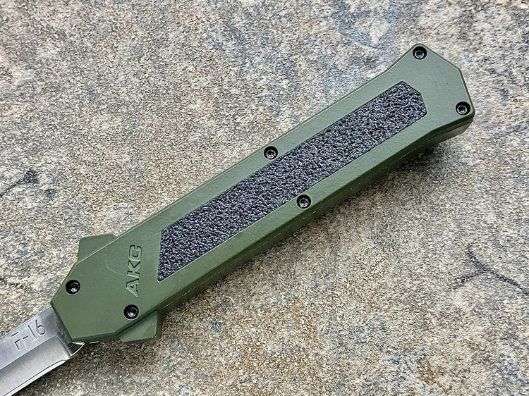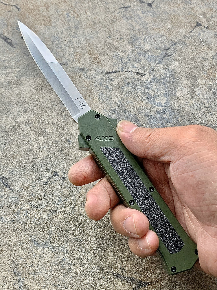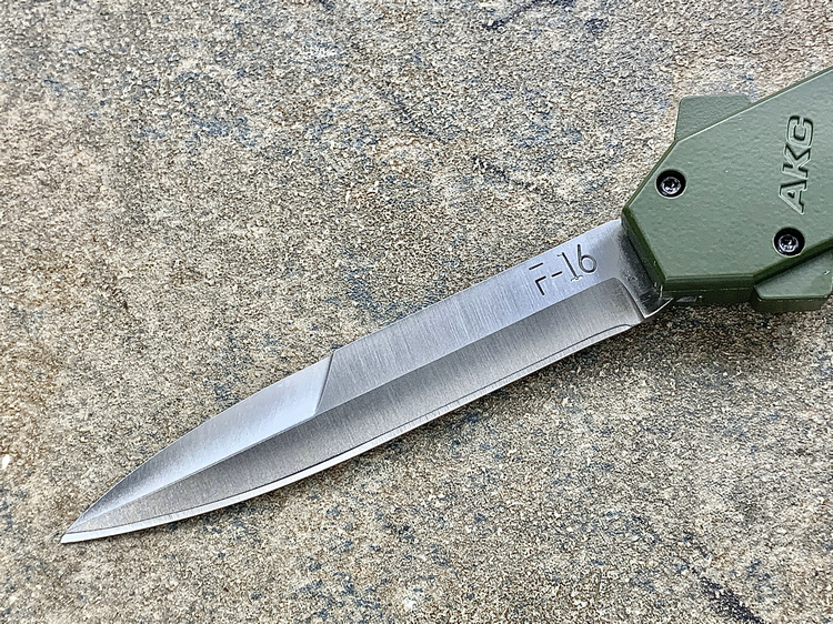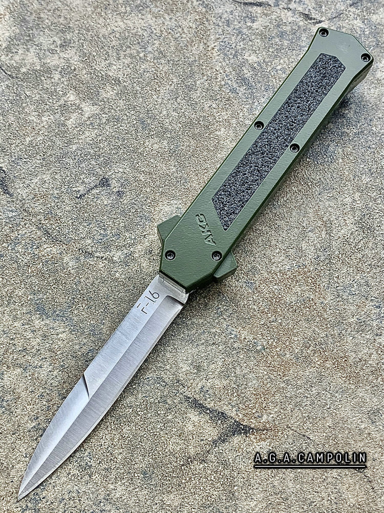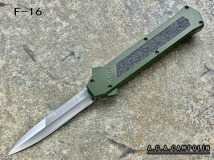 意大利AKC F-16 绿色铝合金柄 嵌磨贴片 钢本色刺刀型 单锋直跳(暂无现货)