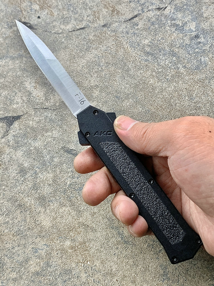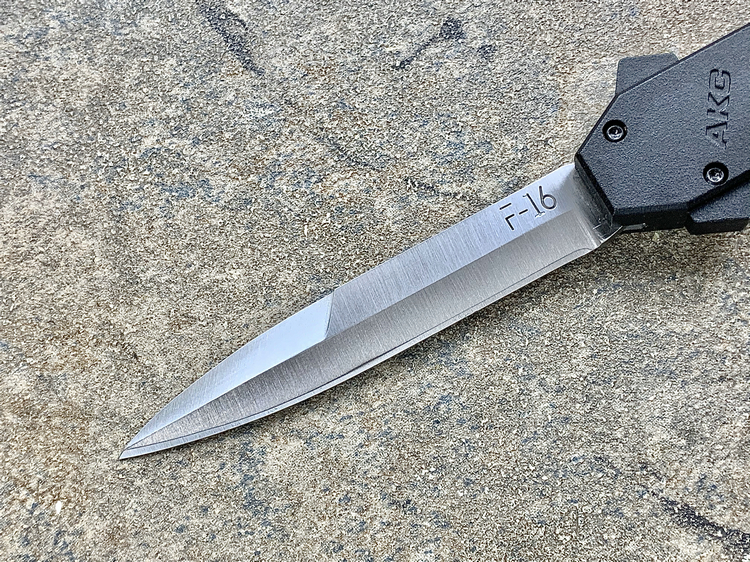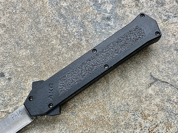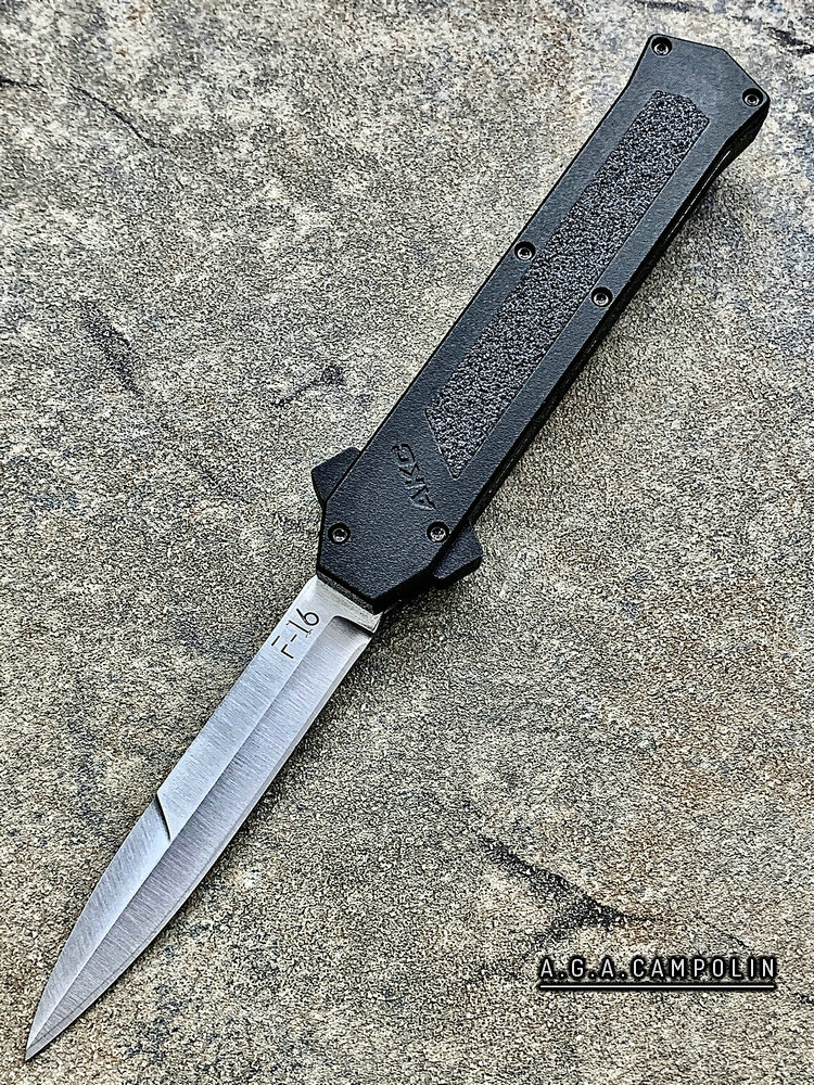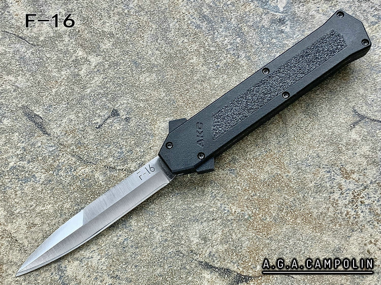 意大利AKC F-16 黑色铝合金柄 嵌磨贴片 钢本色刺刀型 单锋直跳 (暂无现货)