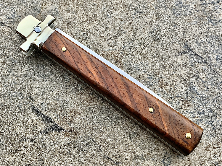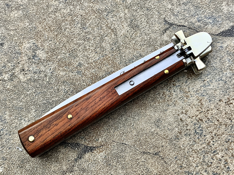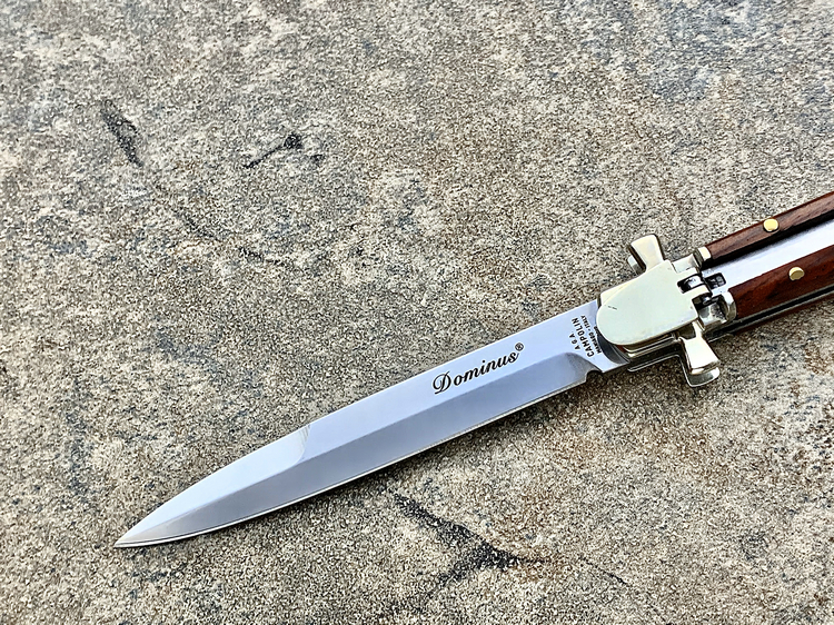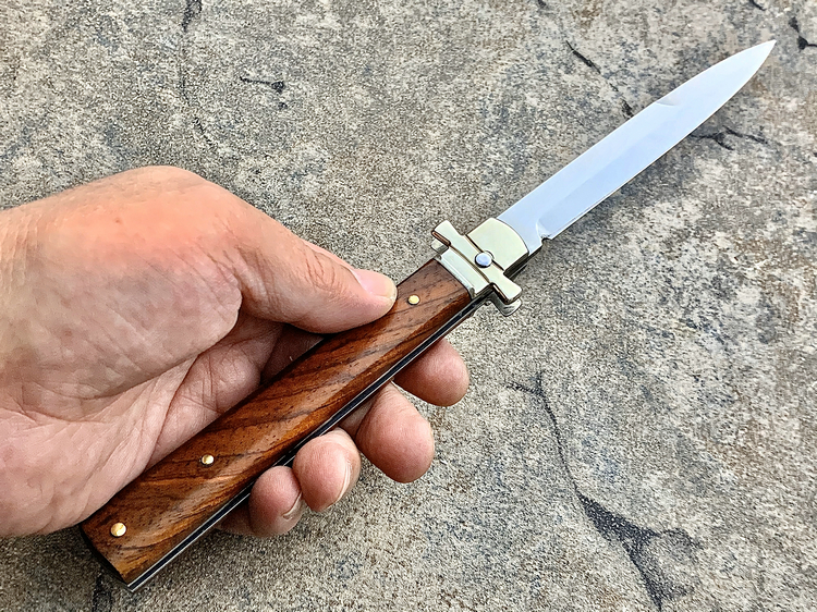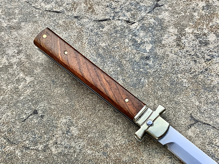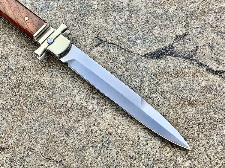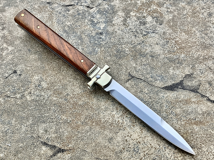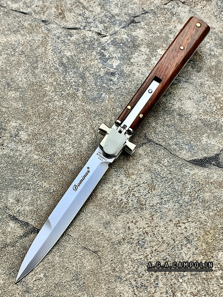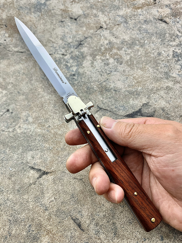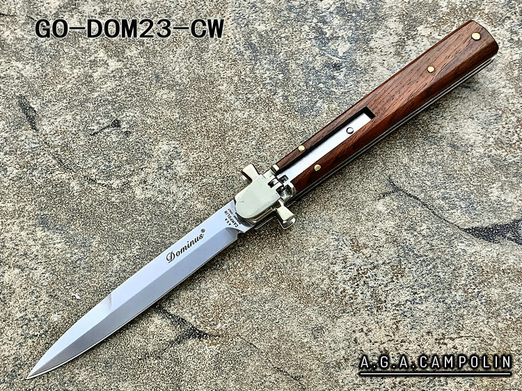 全长:230mm 刃长:101mm 刃厚:3mm 刃材:440A 硬度:59HRC 闭合:129mm 锁型:杠杆锁 重量:120g 老安杰洛·坎波林(Angelo Campolin Sr. )1923年出生于意大利的马尼亚戈(Maniago)。二战前,他致力于完善他的制刀技术,并在这个时候制作了他的第一把刀片。战后,1947年,他创办了自己的公司,制作了30支标有“安杰洛·坎波林”的细高跟鞋(经典意大利侧跳)。虽然路程很远,他还是骑自行车去威尼斯卖。几年后,他开始与毛罗马里奥(Mauro Mario)建立合作关系,后者为许多美国进口商制造刀具,如Rosco、C.G.刀具、B.Svoboda、C.C.C刀具和其他美国市场刀具。而且,威尼斯和的里雅斯特的游客们也为这个“”讨厌“”的玩具而疯狂!安吉洛为38厘米和45厘米的大尺寸高跟鞋制作了工具。起初,这些是撬锁细高跟鞋,后来改为旋转垫片样式。在二战后的时代,坎波林是唯一一家生产这种尺寸的工厂。其他尺寸过去和现在都是由其他制造商生产的。20世纪60年代,他开始引入其他机制,包括锁回式。起初,这些都是用在切刀狩猎刀,然后也有一些细高跟鞋。它成为最流行的自动折叠猎刀。 20世纪70年代,安吉洛的儿子詹尼(Gianni ))开始在这家公司工作,他们专门为位于德国索林根的罗伯特·克拉斯公司(Robert Klaas company)折叠猎刀和手工折叠高跟鞋,上面有他们的吻鹤印记。这是猎鹰刀的开始,至今仍在营业。1999年,小安杰洛(Angelo Jr. ))21岁开始在公司工作。他第一次到美国去俄勒冈州参加刀展,展出了许多质量上乘的猎鹰折叠刀。他还喜欢快开刀,从这次展会和通过互联网与许多美国收藏家建立了关系和友谊。他开了自己的公司专门经营自动刀。有些是老安吉洛做的,有些是其他有独家协议的狂热工匠做的。这是他的公司AKC(Automatic Knives Creations, or Angelo Knives Campolin)的开始。 我们的目标是使用老刀工技术和传统提供高品质的自动刀。ANGELO CAMPOLIN JR.