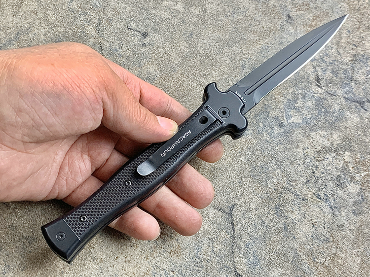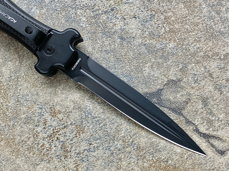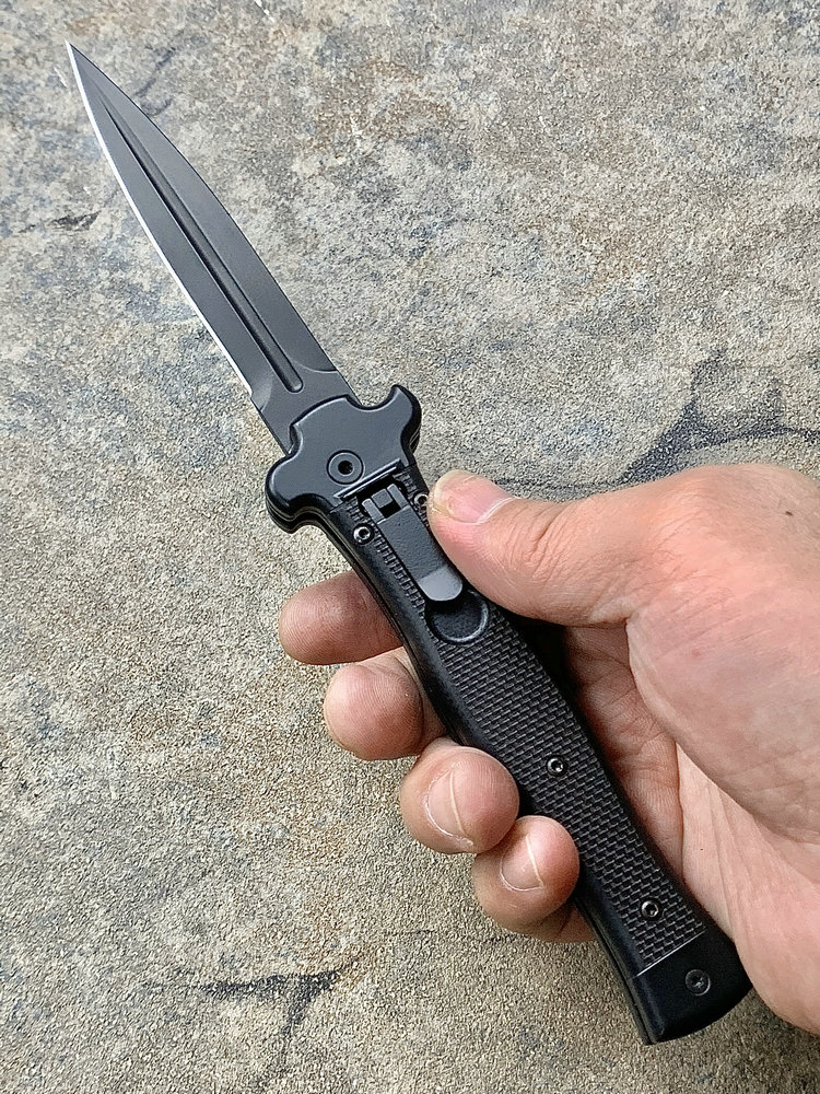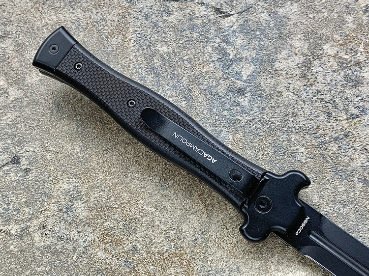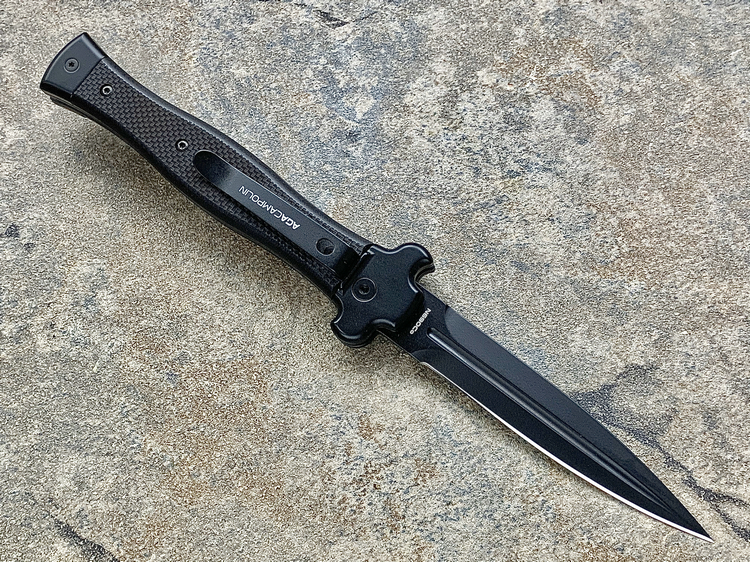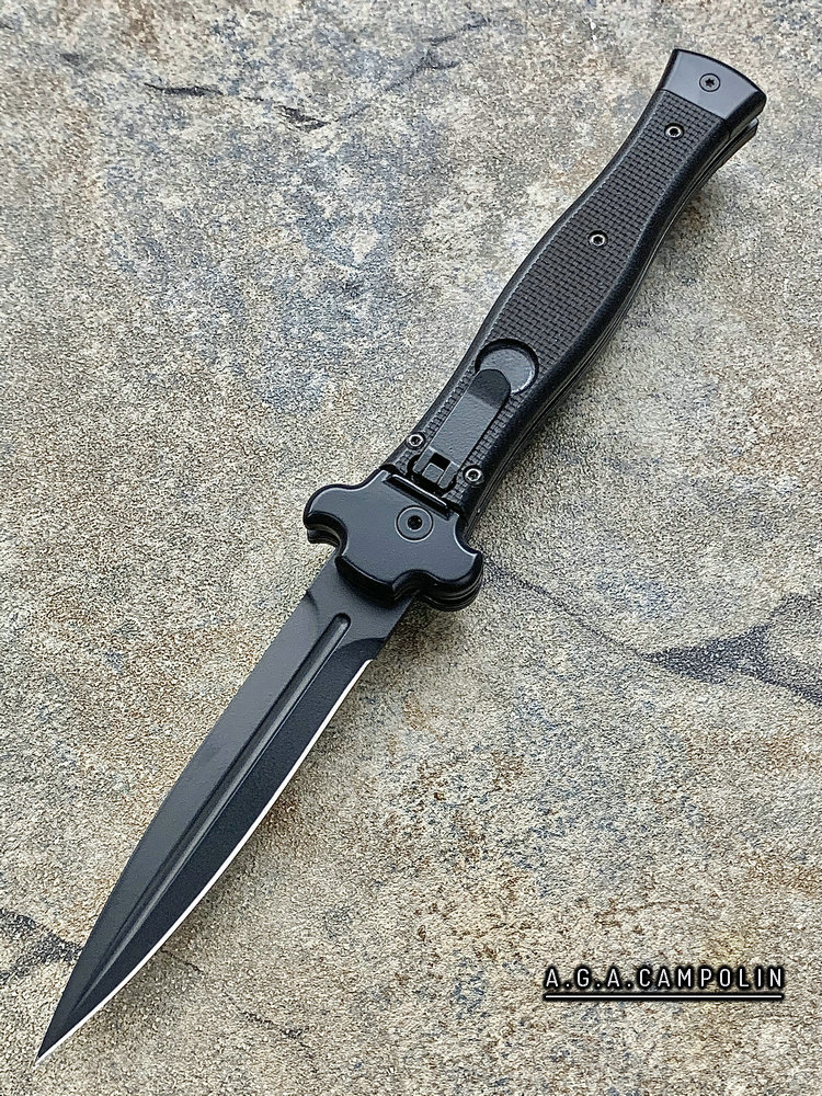 全长:219mm 刃长:93mm 刃厚:2.8mm 刃宽:16.5mm 刃材:N690Co 硬度:60HRC 闭合:125.5mm 产地:意大利 重量:171g 老安杰洛·坎波林(Angelo Campolin Sr. )1923年出生于意大利的马尼亚戈(Maniago)。二战前,他致力于完善他的制刀技术,并在这个时候制作了他的第一把刀片。战后,1947年,他创办了自己的公司,制作了30支标有“安杰洛·坎波林”的细高跟鞋(经典意大利侧跳)。虽然路程很远,他还是骑自行车去威尼斯卖。几年后,他开始与毛罗马里奥(Mauro Mario)建立合作关系,后者为许多美国进口商制造刀具,如Rosco、C.G.刀具、B.Svoboda、C.C.C刀具和其他美国市场刀具。而且,威尼斯和的里雅斯特的游客们也为这个“”讨厌“”的玩具而疯狂!安吉洛为38厘米和45厘米的大尺寸高跟鞋制作了工具。起初,这些是撬锁细高跟鞋,后来改为旋转垫片样式。在二战后的时代,坎波林是唯一一家生产这种尺寸的工厂。其他尺寸过去和现在都是由其他制造商生产的。20世纪60年代,他开始引入其他机制,包括锁回式。起初,这些都是用在切刀狩猎刀,然后也有一些细高跟鞋。它成为最流行的自动折叠猎刀。 20世纪70年代,安吉洛的儿子詹尼(Gianni ))开始在这家公司工作,他们专门为位于德国索林根的罗伯特·克拉斯公司(Robert Klaas company)折叠猎刀和手工折叠高跟鞋,上面有他们的吻鹤印记。这是猎鹰刀的开始,至今仍在营业。1999年,小安杰洛(Angelo Jr. ))21岁开始在公司工作。他第一次到美国去俄勒冈州参加刀展,展出了许多质量上乘的猎鹰折叠刀。他还喜欢快开刀,从这次展会和通过互联网与许多美国收藏家建立了关系和友谊。他开了自己的公司专门经营自动刀。有些是老安吉洛做的,有些是其他有独家协议的狂热工匠做的。这是他的公司AKC(Automatic Knives Creations, or Angelo Knives Campolin)的开始。 我们的目标是使用老刀工技术和传统提供高品质的自动刀。ANGELO CAMPOLIN JR.