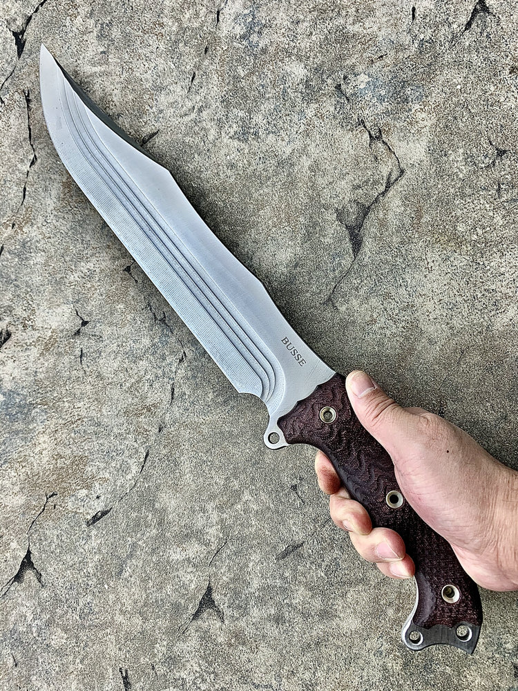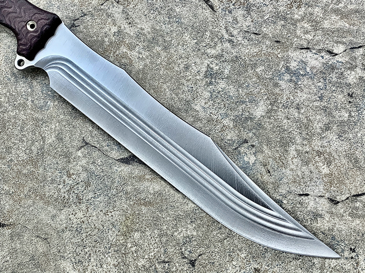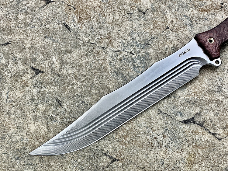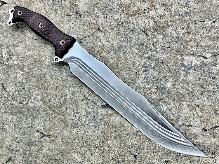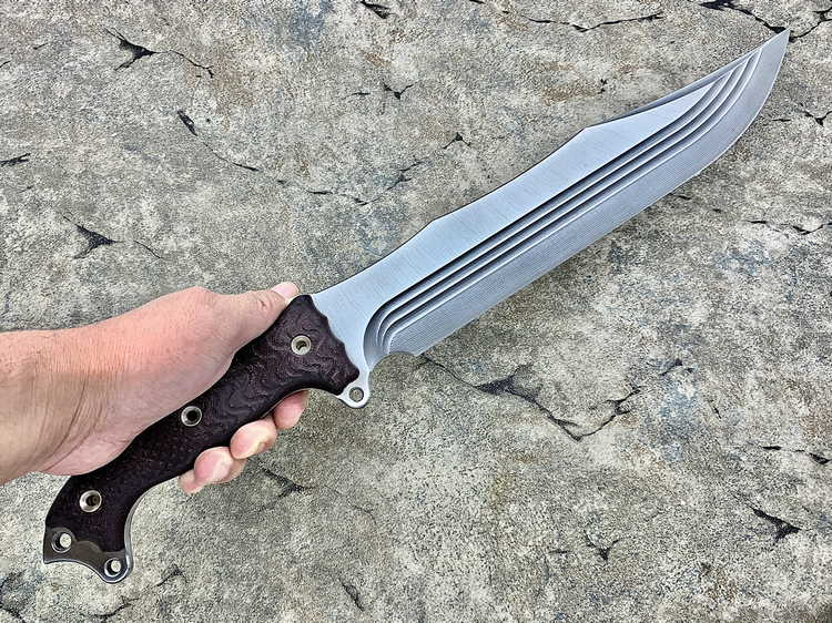 全长:314mm 刃长:163mm 刃厚:5.5mm 刃宽:47mm 刃材:INFI 硬度:60HRC 重量:487g 产地:美国