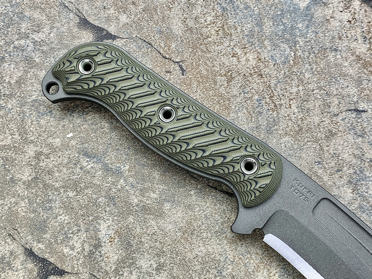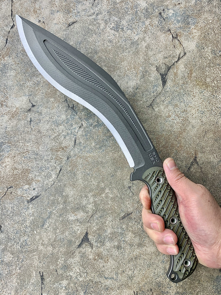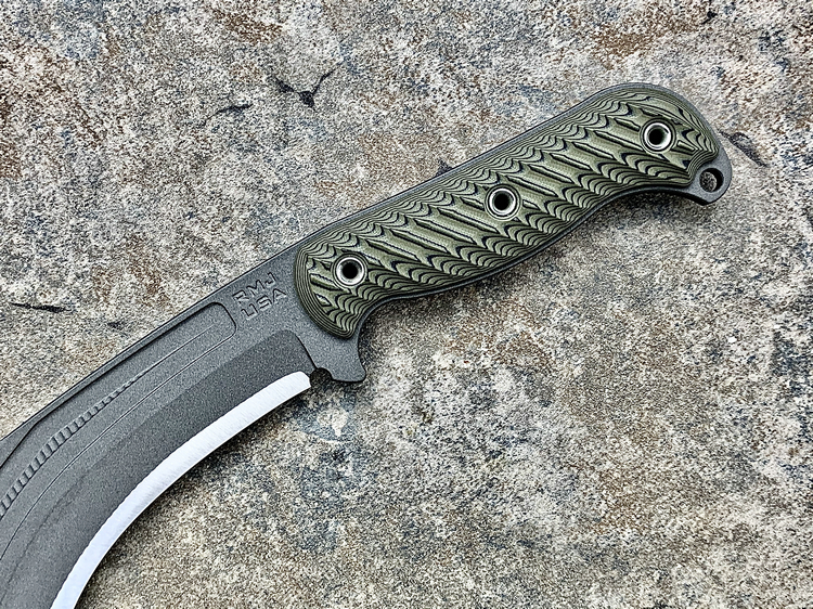 全长: 393mm 刃长:250mm 刃厚:7mm 刃宽:60.5mm 刃材:1075 硬度:59-60HRC 重量:699g 产地:美国RMJ战斧的设计与制造者瑞安•M•约翰逊(Ryan M Johnson,也是RMJ战斧品牌名称的由来)是一名经验极其丰富的机械工程师,同时他也是美国锻造刀匠协会(American Bladesmith Society)的老牌会员,拥有25年锻造刀斧的经验。瑞安和他的父亲在创办公司制作战斧前,仔细考察了历史上众多的印第安式战斧,并将自己独特的设计融入其中。如今RMJ的战斧主要供给特种部队、SWAT、消防队员和各单位的执法人员。