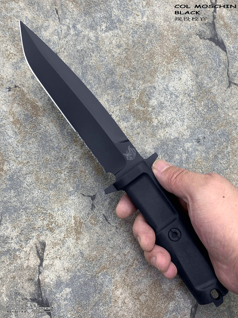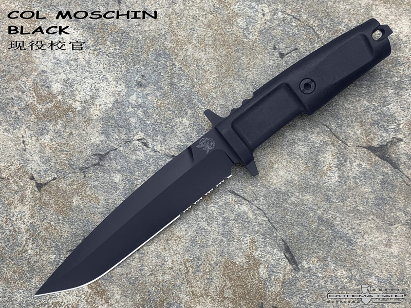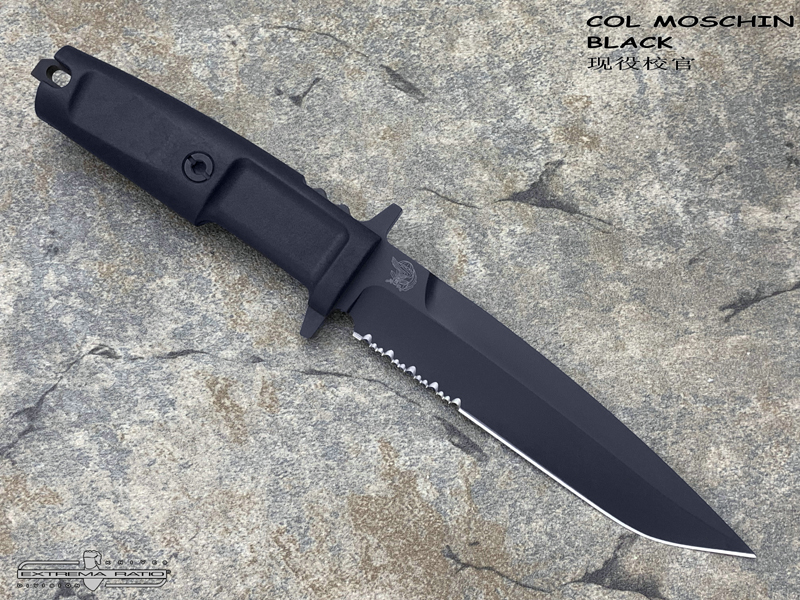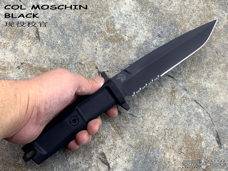 全长:290mm 刃长:158mm 刃材:N690 硬度:58HRC 刃厚:6.3mm 刃宽:32.5mm 重量:262g 产地:意大利 2002 年由著名的 9° Rgt 委托设计并正式采用。 “Col Moschin”校官深得纯粹战斗刀的精髓。 受到Arditi 带有不对称双刃和笔直但定向手柄的匕首的启发,该团从中继承了其风格,它被重新设计成现在的这款校官。 重心强烈后移,尖端特别易于穿刺。 它轻巧、方便且直观。 每个新9° Rgt成员都会配一支校官,每个新9° Rgt成员都经过严格训练以充分利用它。