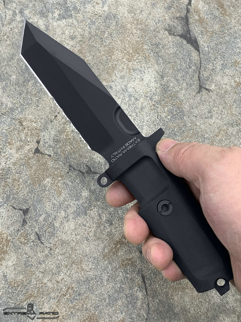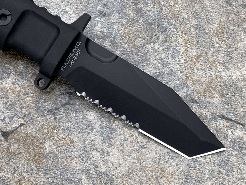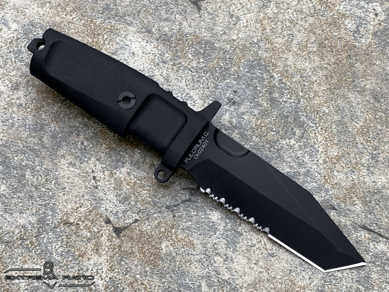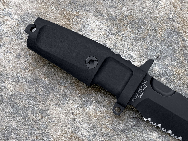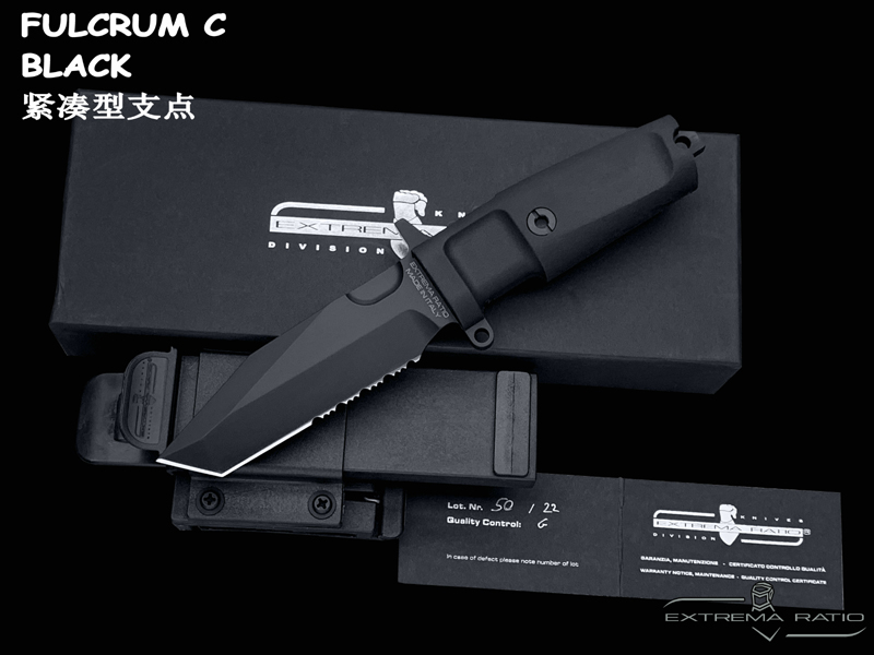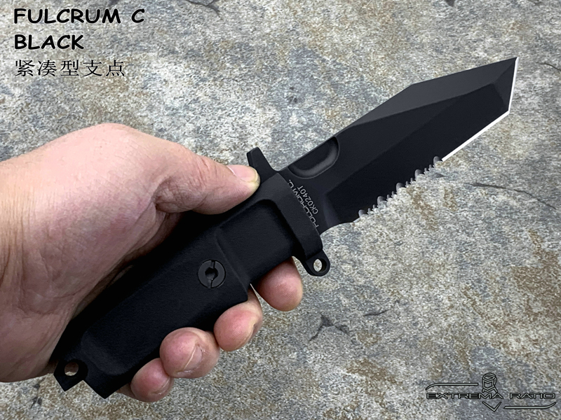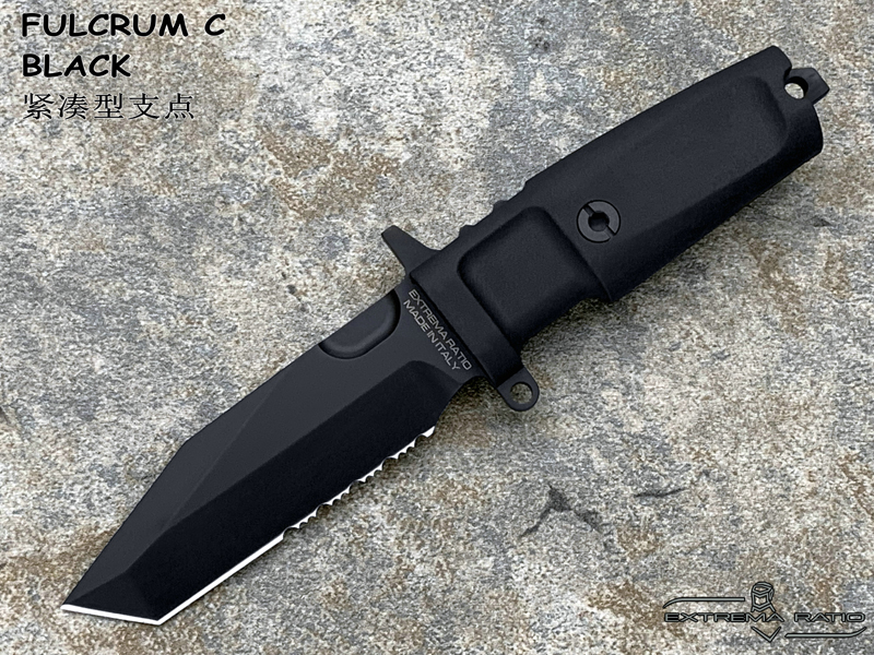 全长: 212mm 刃长: 93mm 刃材: N690 硬度: 58HRC 表面: 钛氮涂层 刃厚: 6.3mm刃宽: 32mm 柄材: FORPRENE (北约军规) 重量: 235g 产地: 意大利 FULCRUM C是FURCRUM的紧凑型,保留了坚固耐用的所有特性,由于刀片(仅93 mm)和手柄的尺寸较小,因此易于携带和隐藏。ABS护套可水平、垂直或倾斜45°放置。刀鞘通过压力自动拔出和重新插入,这一细节使其成为一种直观和非常快速的工具,特别适合紧急使用和个人防御。FULCRUM C的原始版本具有紧凑的100mm手柄,而全手柄(FH)版本具有更舒适的127mm手柄。