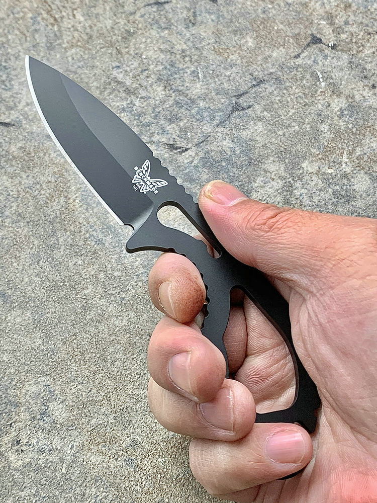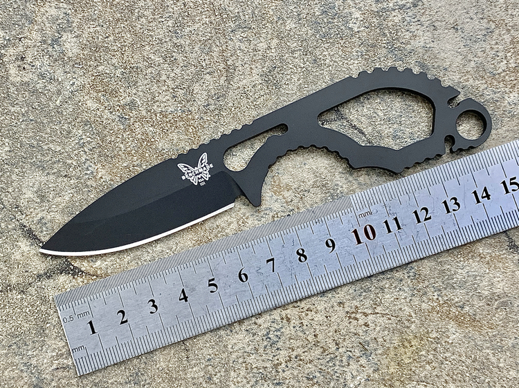 全 长:151mm 刃长:63mm 刃厚:3.9mm 刃宽:23mm 刃材:S30V 硬度:60-61HRC 重量:56g 含鞘74g 产地:美国 用以自卫的最后一道防线和EDC活动的第一选择,因此蝴蝶公司将此刀命名为101BK。手柄可以绑伞绳用来防滑。