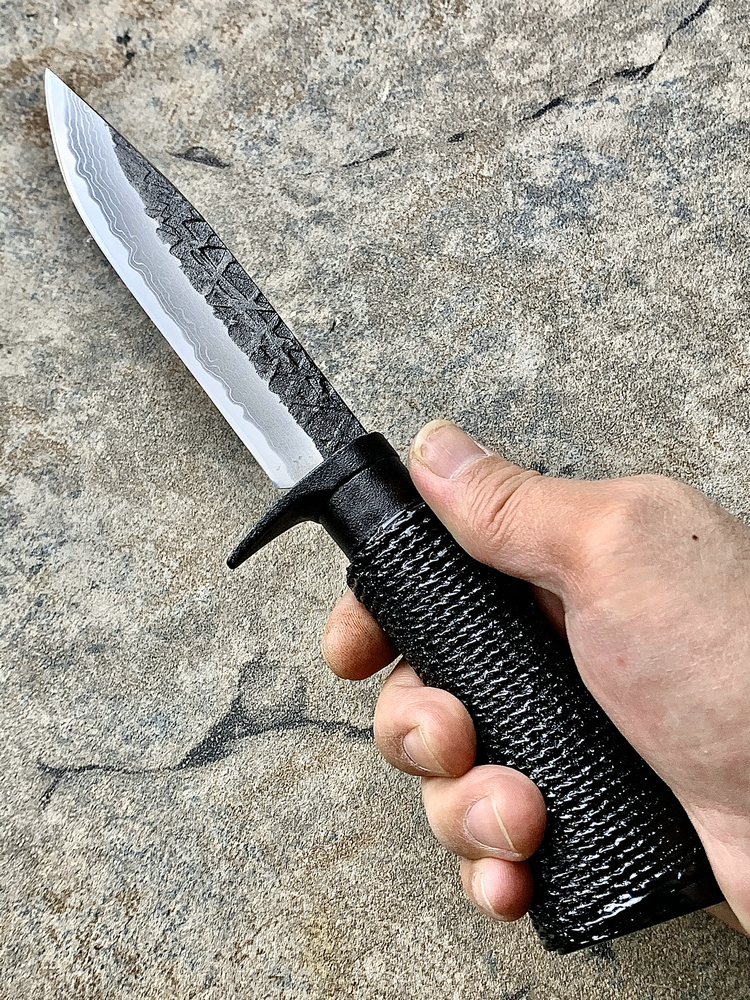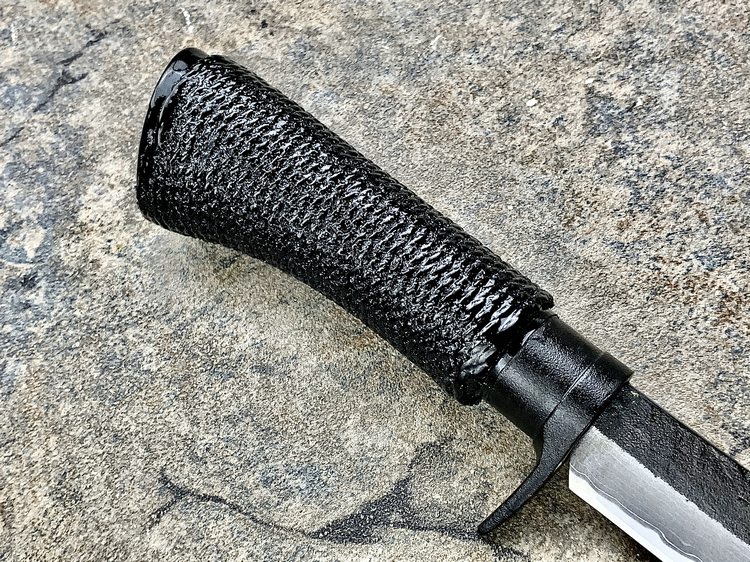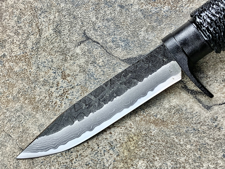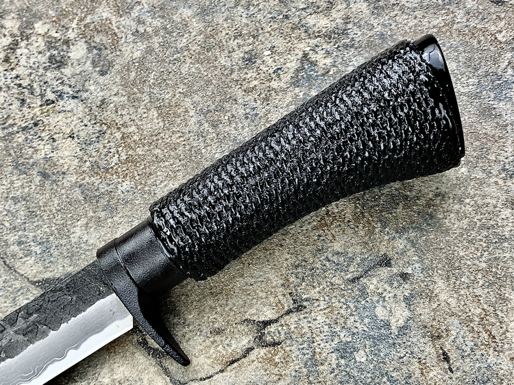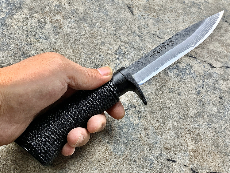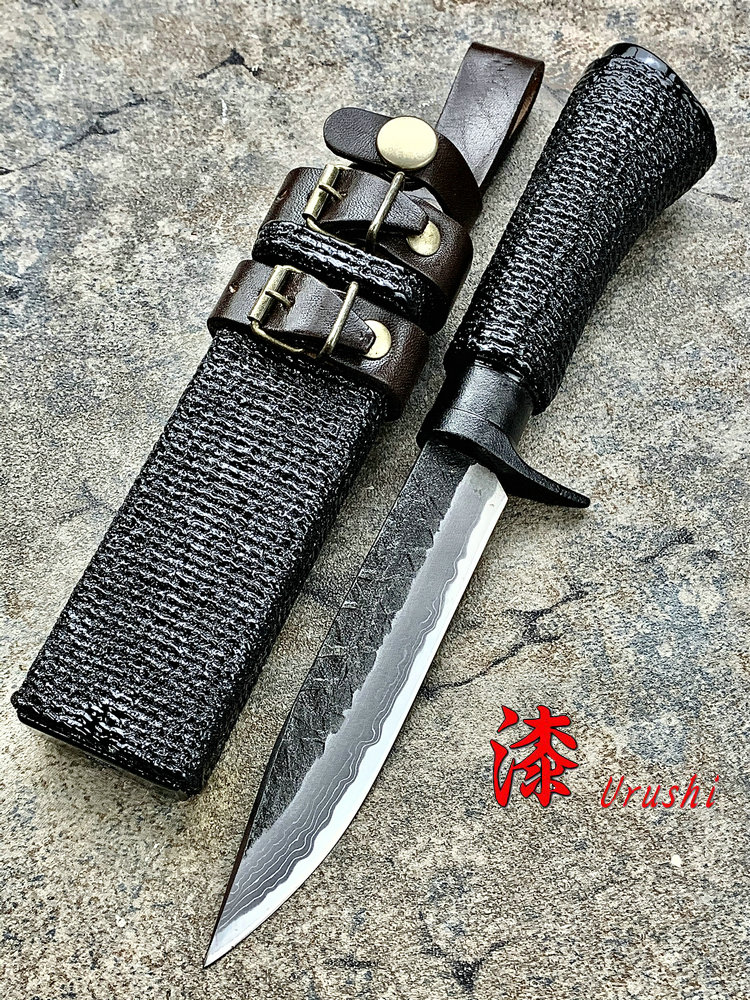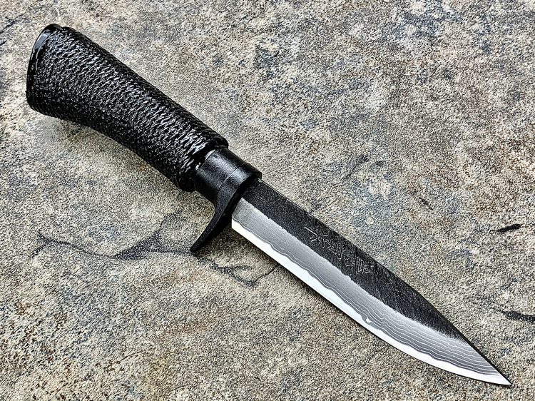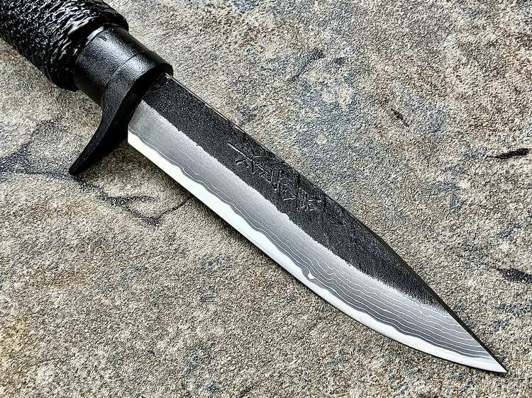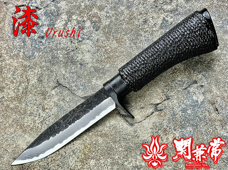 全长:247mm 刃长:123mm 刃厚:4mm 刃宽:24mm 刃材:Blue Steel #2 / 15 layers Damascus 青纸2号核心15层大马士革钢 硬度:61-62HRC 重量:172g 原产地:日本日本岐阜县关市自谦仓时期以来就以制刃闻名于世,日名刃匠关兼常即传承此一传统制刃技术及风格,复以自身苦习,融合传统现代之技术,制作了闻名世界之刃款,凡用刃或搜刃之人莫不以拥有关兼长之刃为傲,凡是刃上有“关兼常作”就是品质与实用的保证。过去数百年来,日本猎人在艰困环境中狩猎以维持生活,靠的就是制作精良的刃具。时至今日,狩猎刃的制作融入许多现代技术,品质更加优异,而这也是关兼常作品的最擅长处。以日本法打造的猎刃,采铁与钢相结合,拥有三样特征:(一)拥有良好切割性,及平衡手感;(二)钢材部分硬而薄,包夹在铁里的钢,会顺着磨刃的角度,依序往上露出,永保刃口锋利;(三)经水淬火刃口形成波浪纹路,甚至起微妙的晶化而泛蓝光,浑然天成的美感实欧美刃具无法比拟。