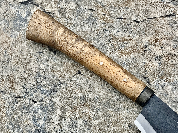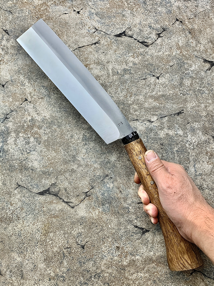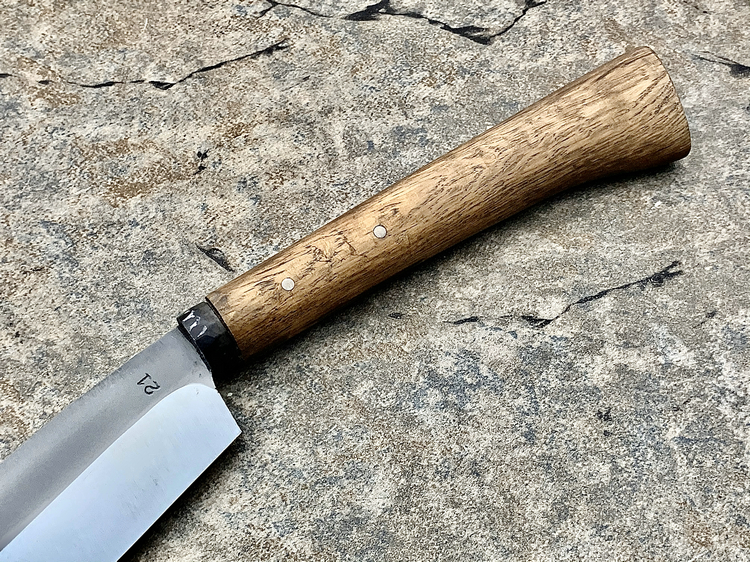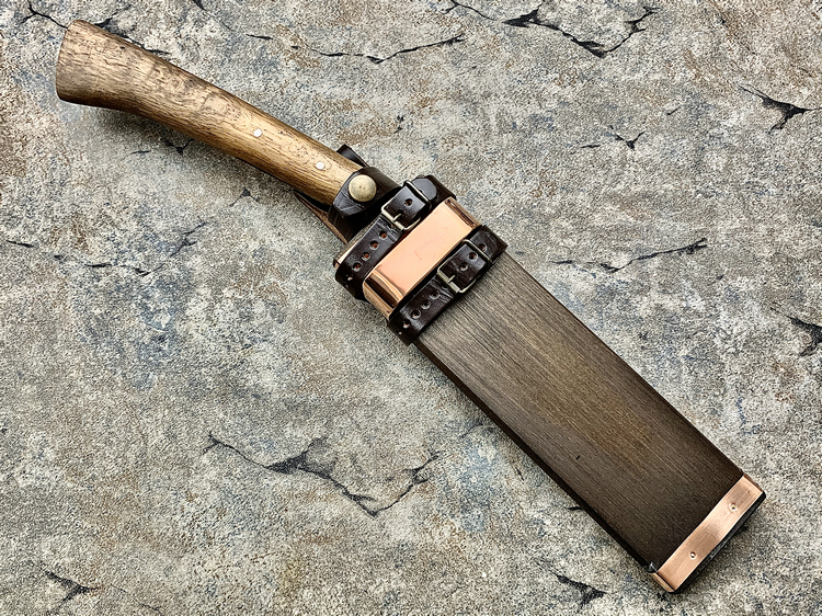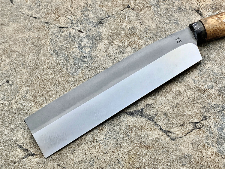 全长:428mm 刃长:213mm 刃厚:6mm 刃宽:52mm 刃材:White Steel #2白纸2号 硬度:60-61HRC 重量:581g 原产地:日本日本岐阜县关市自谦仓时期以来就以制刃闻名于世,日名刃匠关兼常即传承此一传统制刃技术及风格,复以自身苦习,融合传统现代之技术,制作了闻名世界之刃款,凡用刃或搜刃之人莫不以拥有关兼长之刃为傲,凡是刃上有“关兼常作”就是品质与实用的保证。过去数百年来,日本猎人在艰困环境中狩猎以维持生活,靠的就是制作精良的刃具。时至今日,狩猎刃的制作融入许多现代技术,品质更加优异,而这也是关兼常作品的最擅长处。以日本法打造的猎刃,采铁与钢相结合,拥有三样特征:(一)拥有良好切割性,及平衡手感;(二)钢材部分硬而薄,包夹在铁里的钢,会顺着磨刃的角度,依序往上露出,永保刃口锋利;(三)经水淬火刃口形成波浪纹路,甚至起微妙的晶化而泛蓝光,浑然天成的美感实欧美刃具无法比拟。