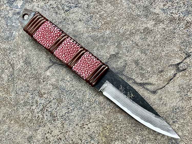 Takeshi Saji 佐治武士 378-RD一心 白纸多层钢 缠藤 红色鱼皮柄小猎刀(暂无现货)
