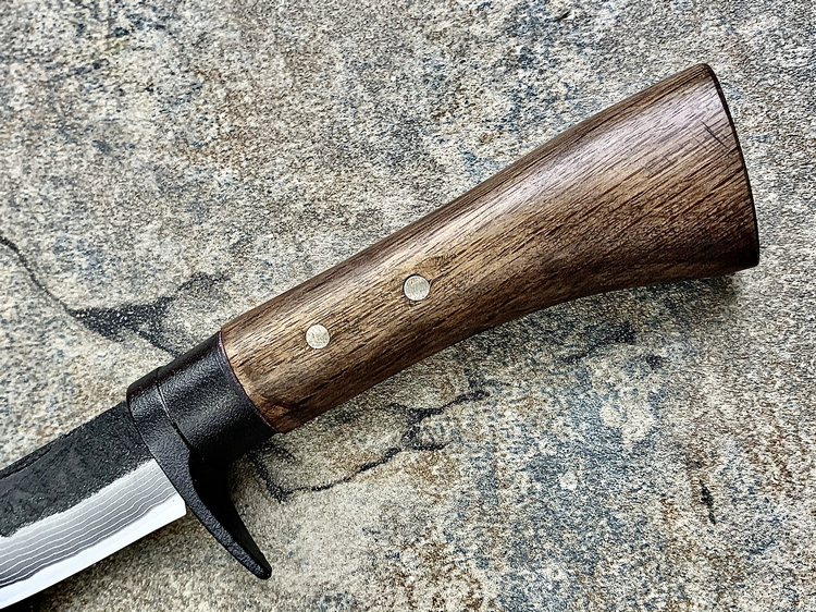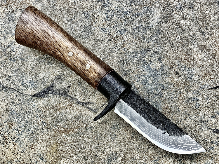 全长:199mm 刃长:78mm 刃厚:4mm 刃宽:24.5mm 刃材:Blue Steel #2 / 15 layers Damascus 青纸2号核心15层大马士革钢 硬度:61-62HRC 重量:144g 原产地:日本 日本岐阜县关市自谦仓时期以来就以制刀闻名於世,日名刀匠关兼常即传承此一传统制刀技术及风格,复以自身苦习,融合传统现代之技术,制作了闻名世界之刀款,凡用刀或蒐刀之人莫不以拥有关兼长之刀为傲,凡是刀上有"兼长作"就是品质与实用的保证。 关氏生于1925年,继承镰仓时代的传统缎刀技术,是当代颇负盛名的刀匠。在二战时期曾被日本军国主义者强迫生产战刀,战后则在日本中央赛马会为装蹄师制作专用刀具。其独创以七层软钦夹安来钢制作所谓"美浓传"的现代日式刀具,传统及现代格调兼备,极具尊贵感。