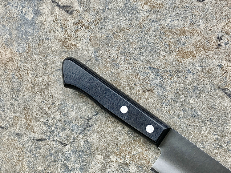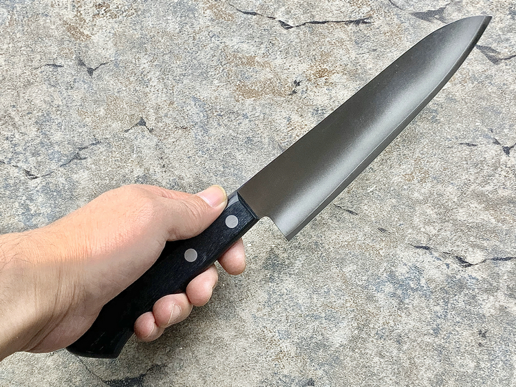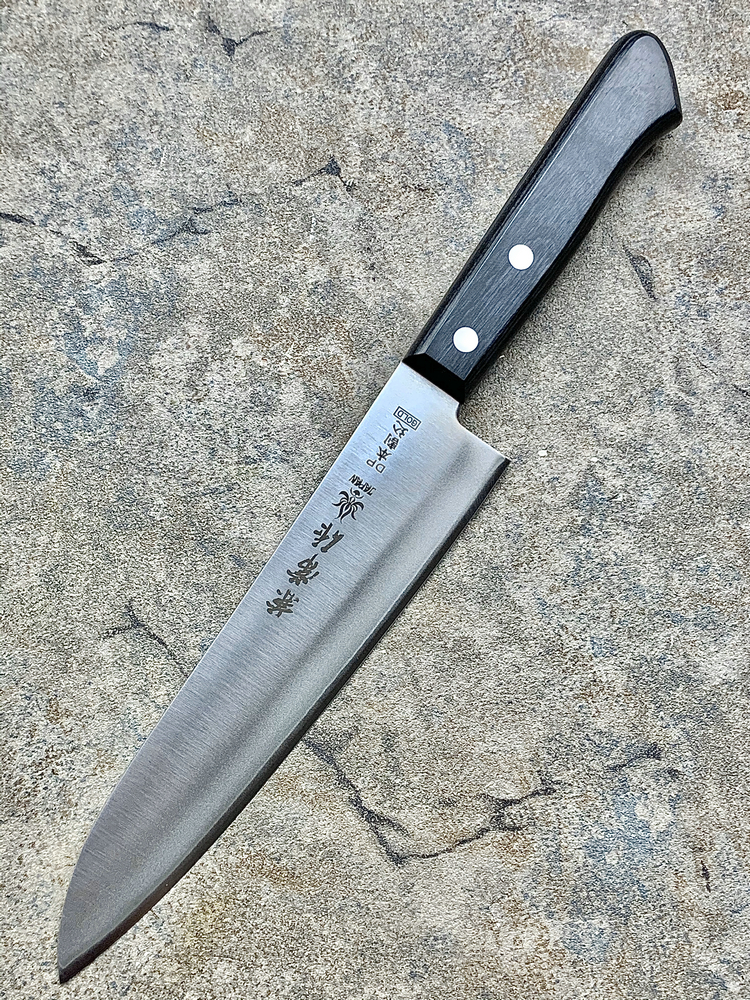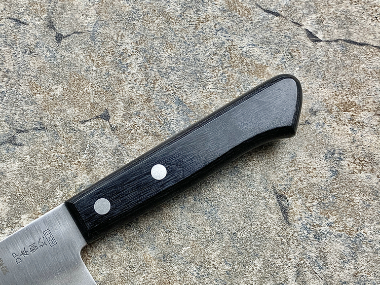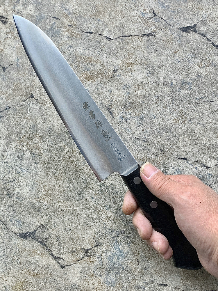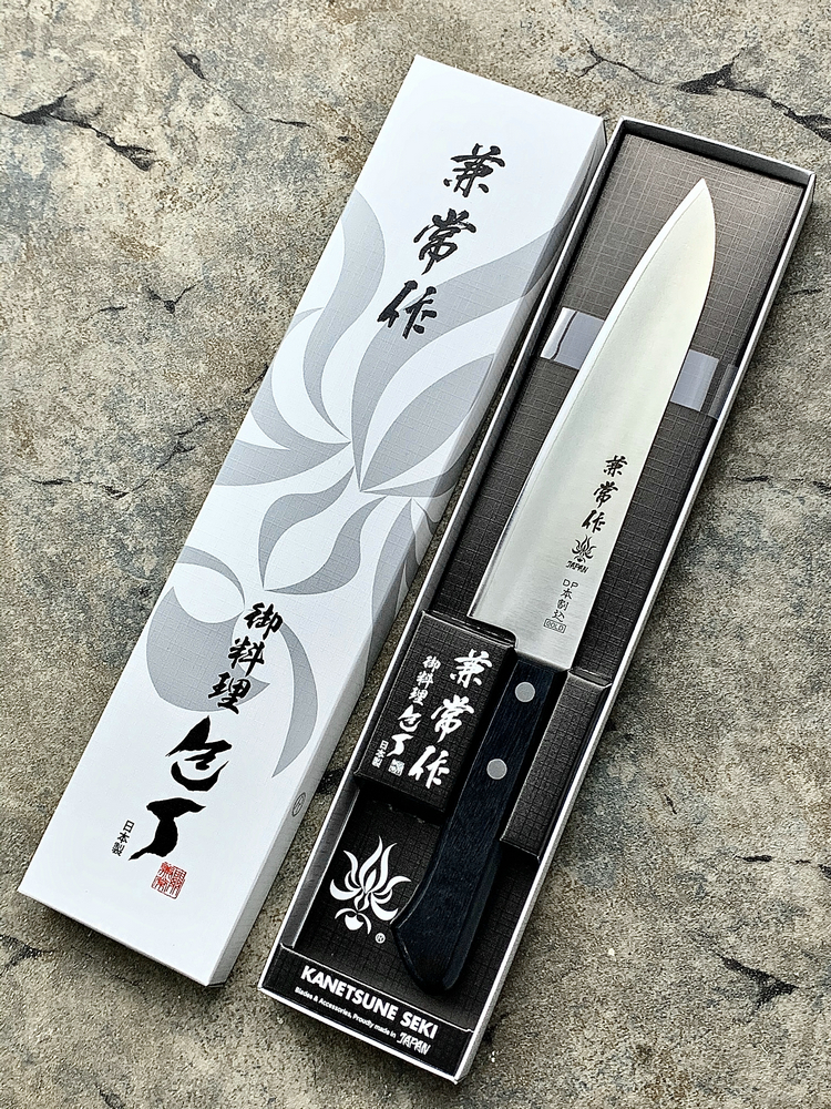 全长:302mm 刃长:178mm 刃宽:40mm 刃厚:1.5mm 刃材:VG-2 Stainless steel core / SUS410 Stainles steel 硬度:58-59HRC 重量:106g 原产地:日本 日本岐阜县关市自谦仓时期以来就以制刀闻名於世,日名刀匠关兼常即传承此一传统制刀技术及风格,复以自身苦习,融合传统现代之技术,制作了闻名世界之刀款,凡用刀或蒐刀之人莫不以拥有关兼长之刀为傲,凡是刀上有"兼长作"就是品质与实用的保证。 关氏生于1925年,继承镰仓时代的传统缎刀技术,是当代颇负盛名的刀匠。在二战时期曾被日本军国主义者强迫生产战刀,战后则在日本中央赛马会为装蹄师制作专用刀具。其独创以七层软钦夹安来钢制作所谓"美浓传"的现代日式刀具,传统及现代格调兼备,极具尊贵感。
