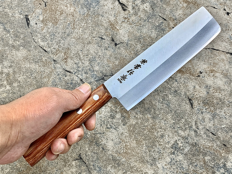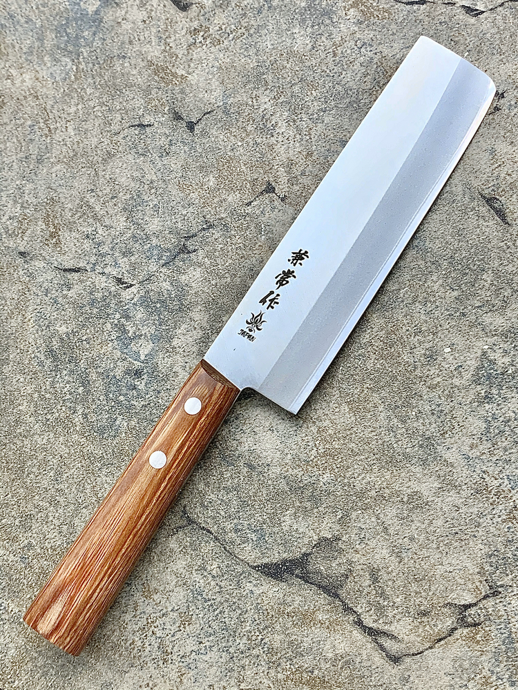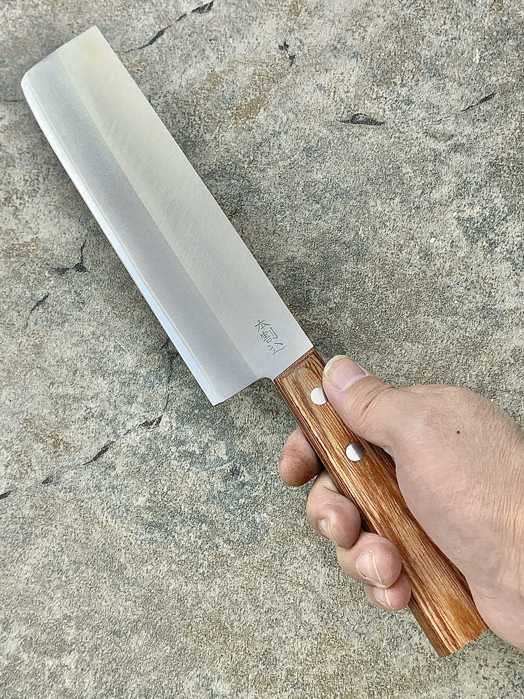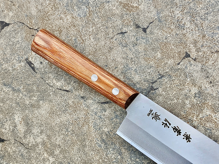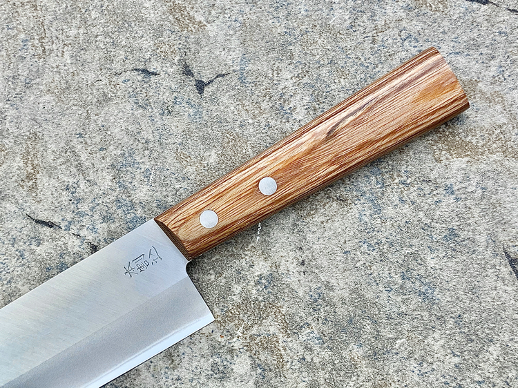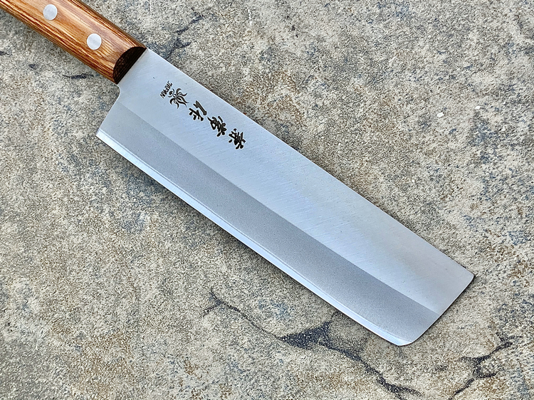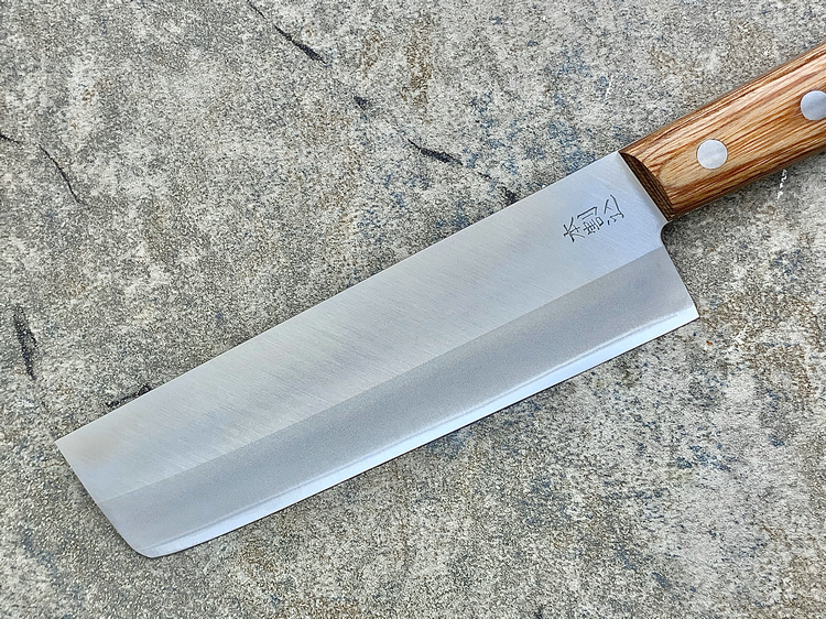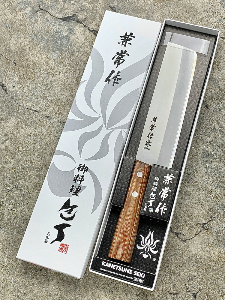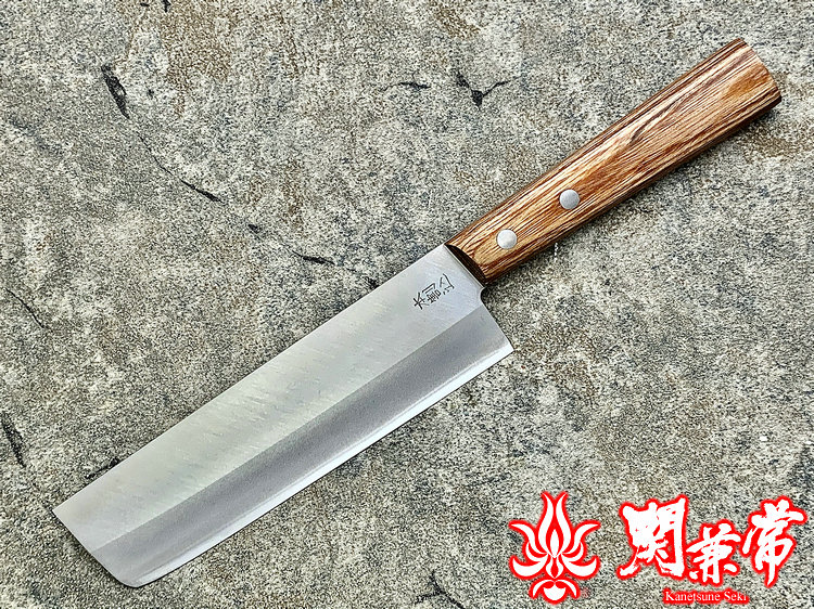全长:287mm 刃长:161mm 刃宽:45.5mm 刃厚:2mm 刃材:Takefu Shiro-2 High carbon steel core / SUS410 Stainless steel 硬度:61-64HRC 重量:148g 原产地:日本 日本岐阜县关市自谦仓时期以来就以制刀闻名於世,日名刀匠关兼常即传承此一传统制刀技术及风格,复以自身苦习,融合传统现代之技术,制作了闻名世界之刀款,凡用刀或蒐刀之人莫不以拥有关兼长之刀为傲,凡是刀上有"兼长作"就是品质与实用的保证。 关氏生于1925年,继承镰仓时代的传统缎刀技术,是当代颇负盛名的刀匠。在二战时期曾被日本军国主义者强迫生产战刀,战后则在日本中央赛马会为装蹄师制作专用刀具。其独创以七层软钦夹安来钢制作所谓"美浓传"的现代日式刀具,传统及现代格调兼备,极具尊贵感。