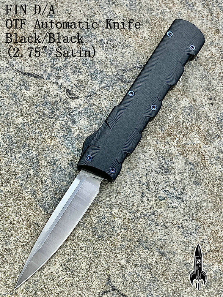 简单描述: D Rocket Designs 火箭 FIN D/A OTF Automatic Knife Black/Black (2.75" Satin) M390刃材 矛头 黑色柄黑色推钮单锋缎面直跳