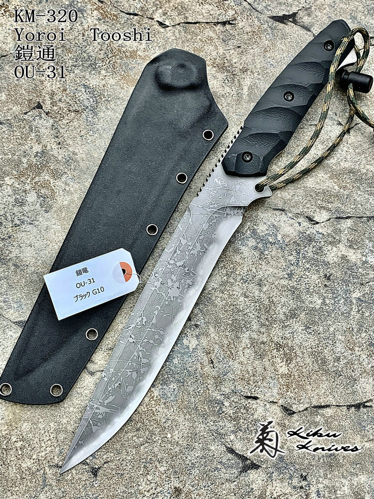 全长:371mm 刃长:202mm 刃厚:6.2mm 刃材:OU-31 硬度:62HRC 柄材:米卡塔 重量:517g 含鞘598g 原产地:日本