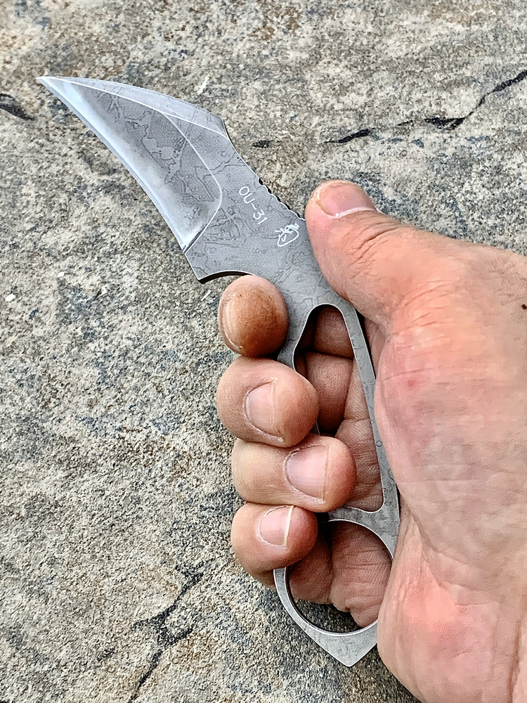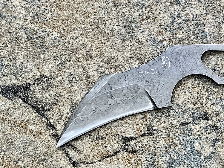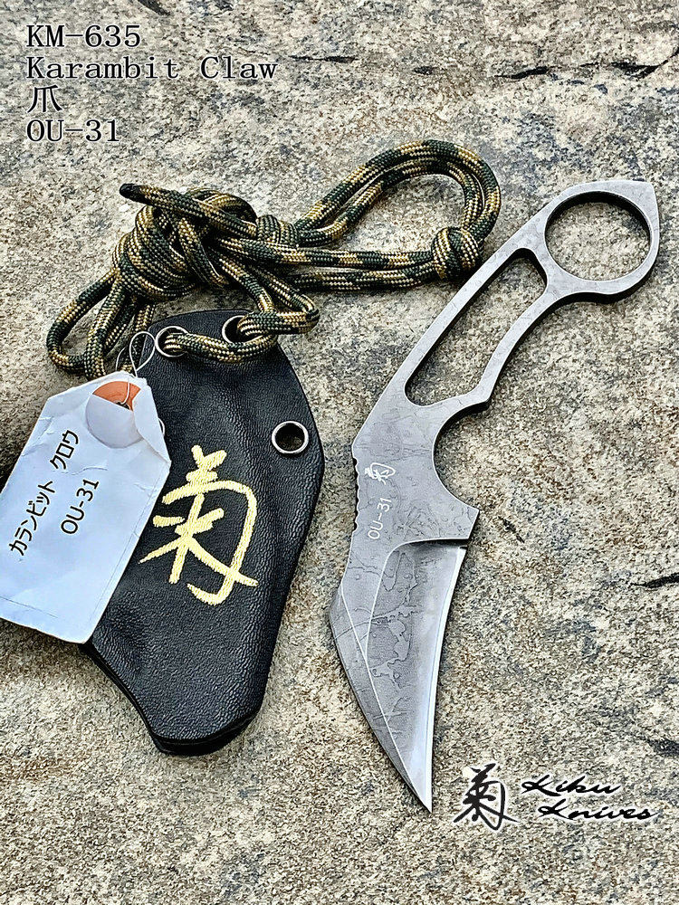 全长:155mm 刃长:56mm 刃厚:4mm 刃宽:25mm 刃材:OU-31 硬度:62HRC 重量:60g 原产地:日本