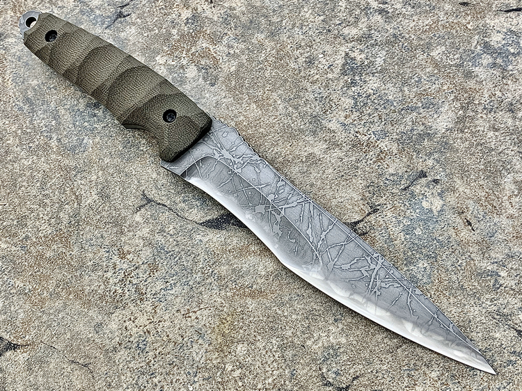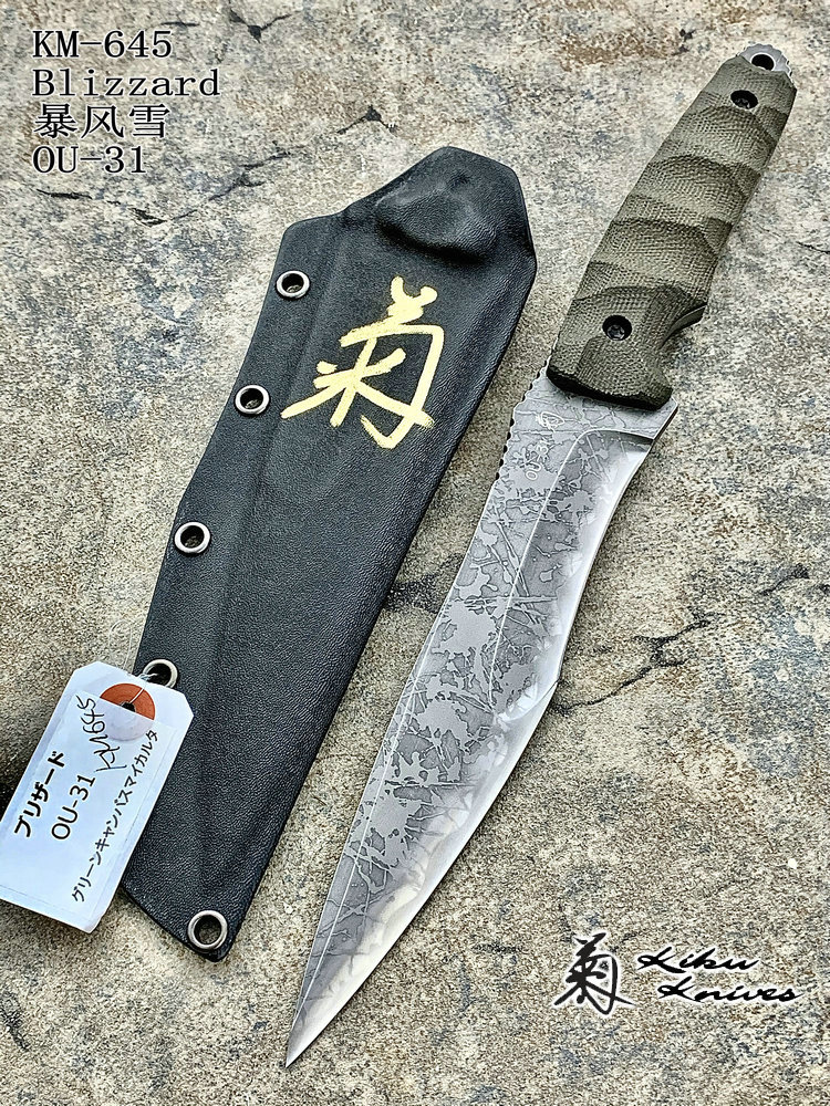 全长:310mm 刃长:174mm 刃厚:5.5mm 刃材:OU-31 硬度:62HRC 柄材:米卡塔 产地:日本 重量:361g