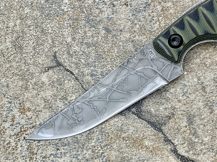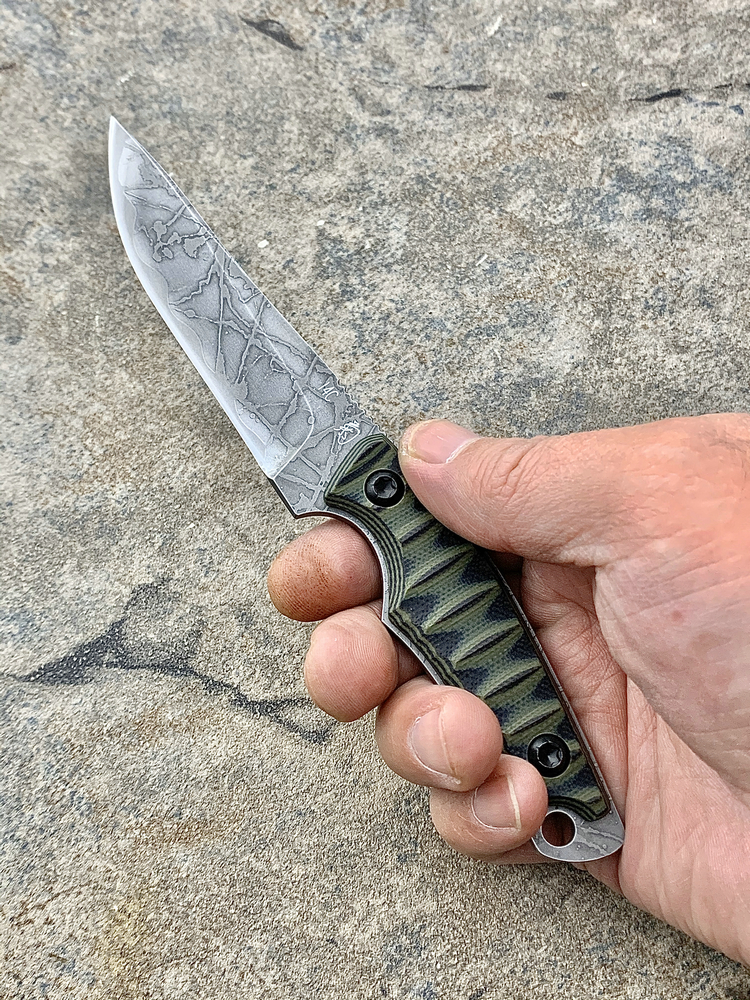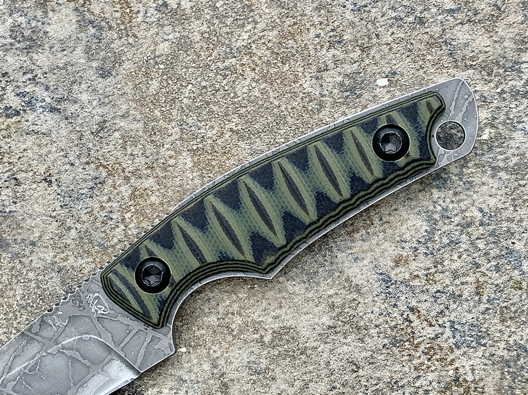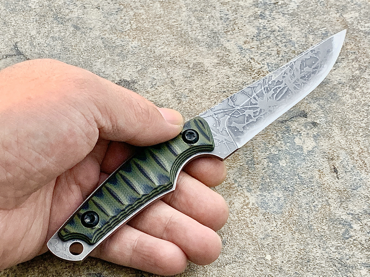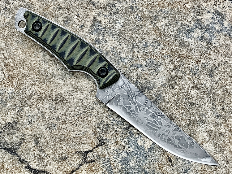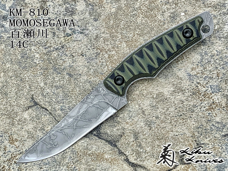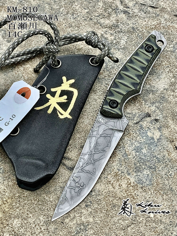 全长:171mm 刃长:85mm 刃材:14C硬度:61HRC 柄材:G10 刃厚:2.5mm 重量:68g含鞘101g 产地:日本 KM-810 Momosegawa 百濑川这是KM-390的新手柄版本。菊男大师是个狂热的垂钓爱好者。Momose-Gawa是他最喜欢钓鱼的山溪。他设计并制作了这款可爱的百濑川方便处理他的战利品。它也是一支实用的颈刀。