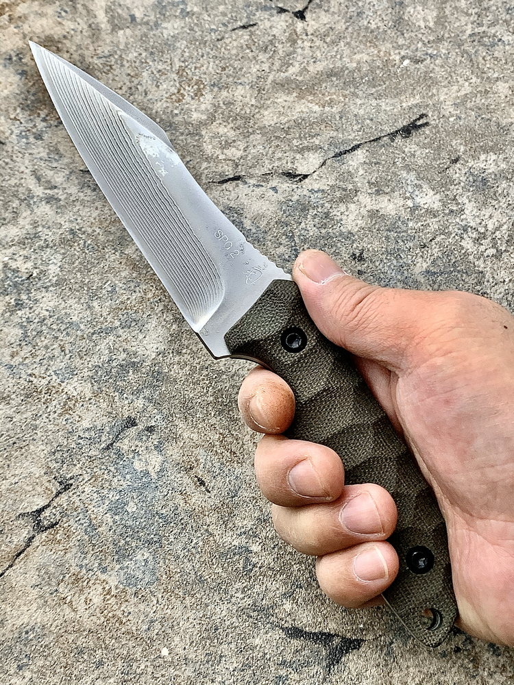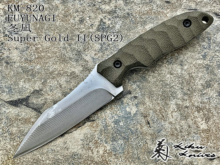 全长:218mm 刃长:109mm 刃厚:4mm 刃材:SPG2 超级黄金大马士革钢 硬度:62HRC 柄材:米卡塔 重量:151g含鞘186g 原产地:日本