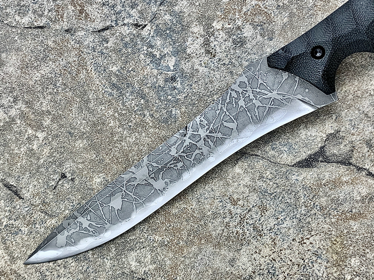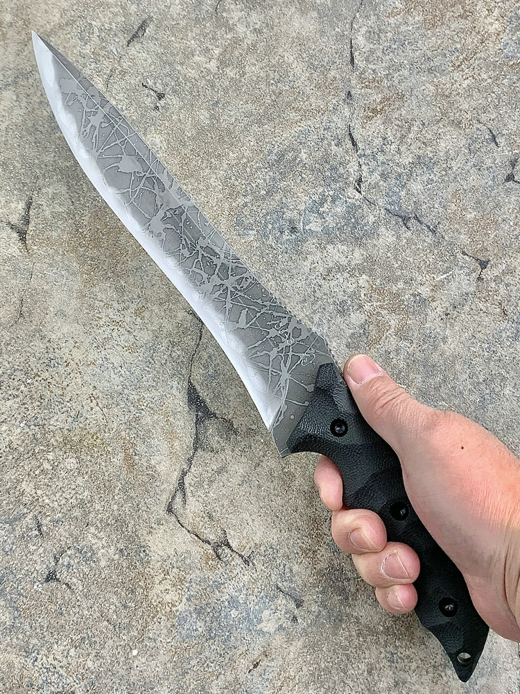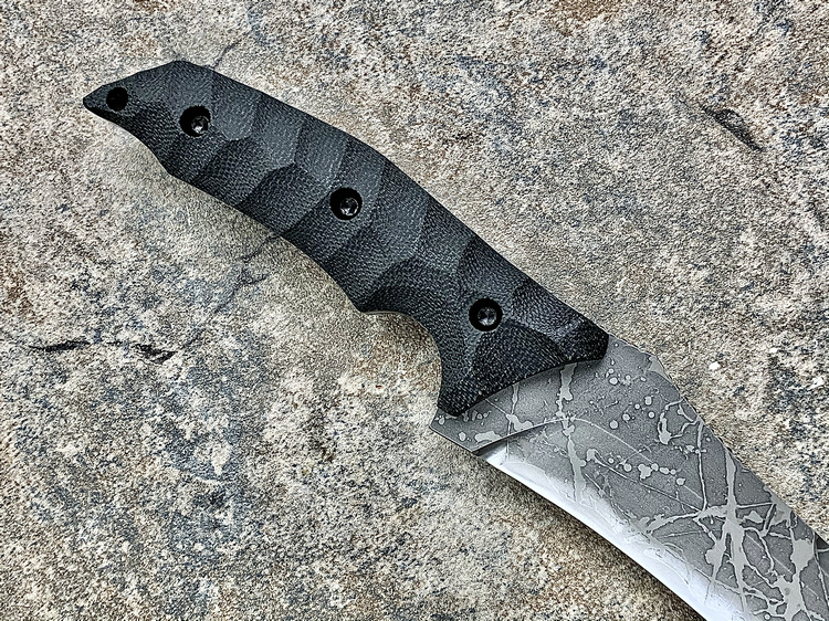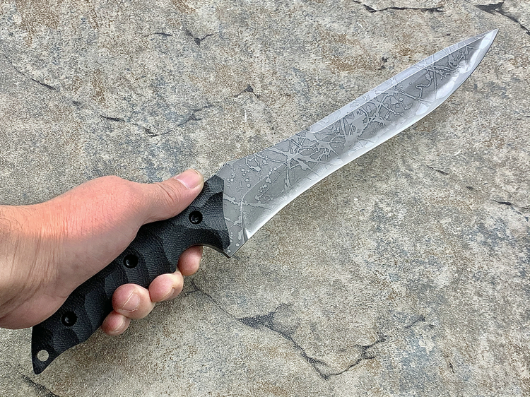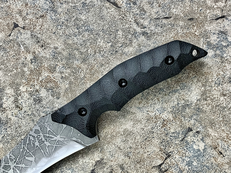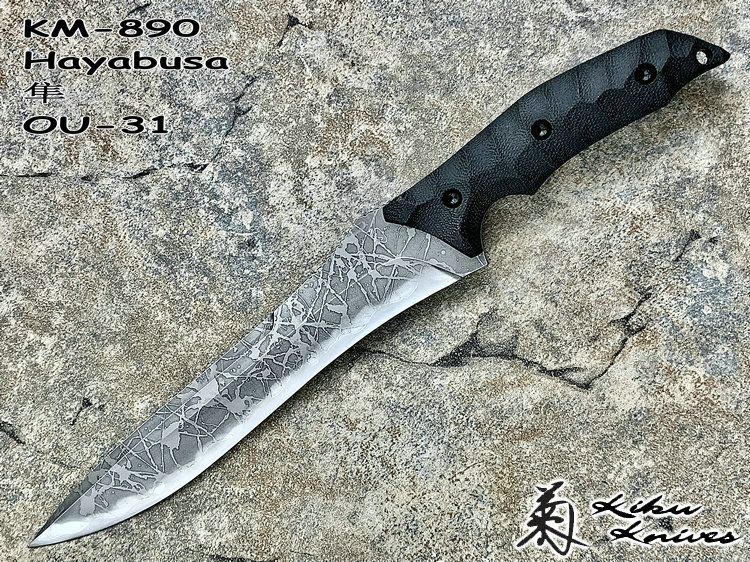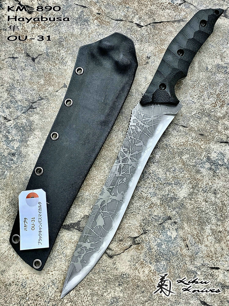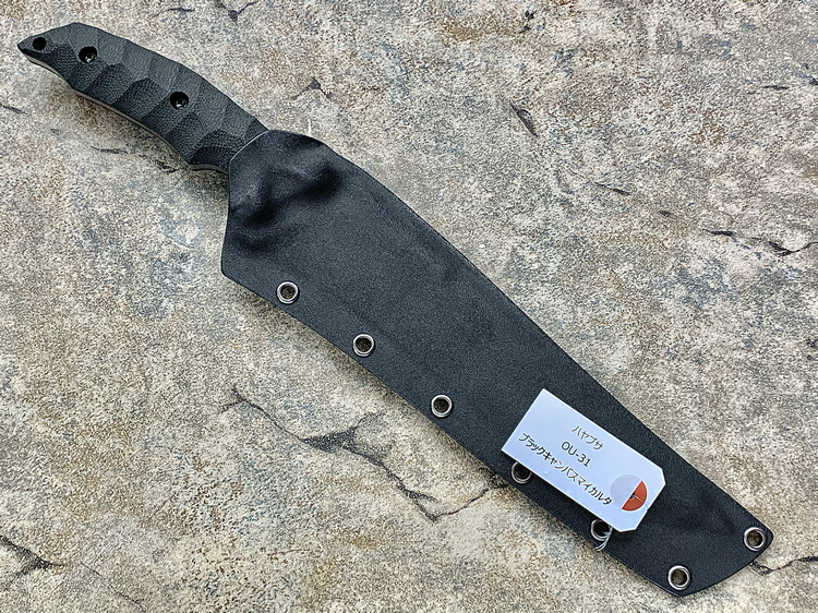 全长:356mm 刃长:224mm 刃宽:42mm 刃厚:6mm 刃材:OU-31 硬度:62HRC 重量:461g 原产地:日本 Hayabusa 隼 是一款比较新的刀型,在去年的东京刀展上刚出现的时候,10把就销售一空,可见这款刀的魅力所在,它的大小适中,平衡感非常好,刀柄设计了手指凹槽,在使用的时候很合手。