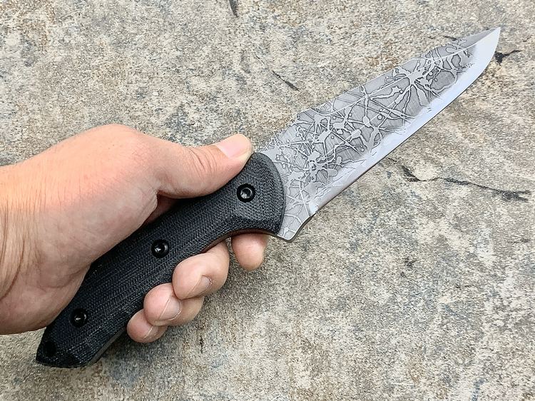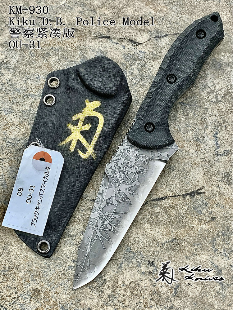 全长:233mm 刃长:107mm 刃宽:37mm 刃厚:6mm 刃材:OU-31 硬度:62HRC 柄材:米卡塔 重量:277g 产地:日本