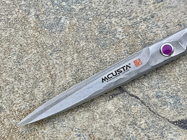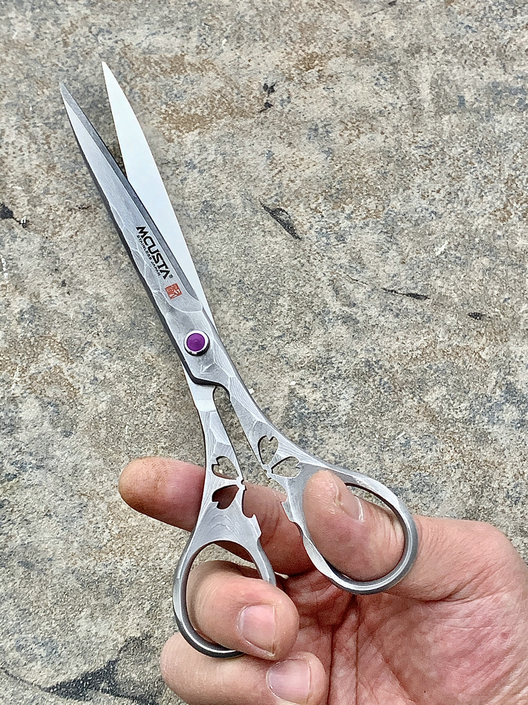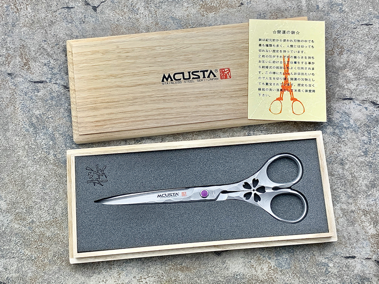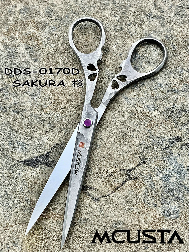 全长: 170mm 刃长:75mm 刃厚: 2.5mm 刃材: VG-10大马士革 硬度: 60HRC 重量: 56g 原产地: 日本 Mcusta 日本传世家徽是由“Machine Custom”延伸而來,意思就是将日本传统工艺、杰出人员技术以及高科技制造机械等元素有机的结合起来,所生产更精致优良刀品的品牌。除了制作一般传统意义上的刃具外,传世家徽品牌刃匠Marusho Industry,历经数十年潜心研发、创造了深受市场欢迎、拥有优良品质的丝滑(SILKY)系列精密剪刃系列作品。这款樱使用日立公司出产的VG-10钢锻造,剪刃刃身修长纤细、锋利耐用。柄部圆滑适合把握,且使用极光切割工艺雕镂出樱花形状造型,并围绕其使用镭射雕刻出小号樱花瓣纹。无论是自己使用,喜庆宴会剪彩或送礼都非常合适。