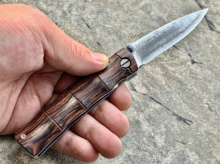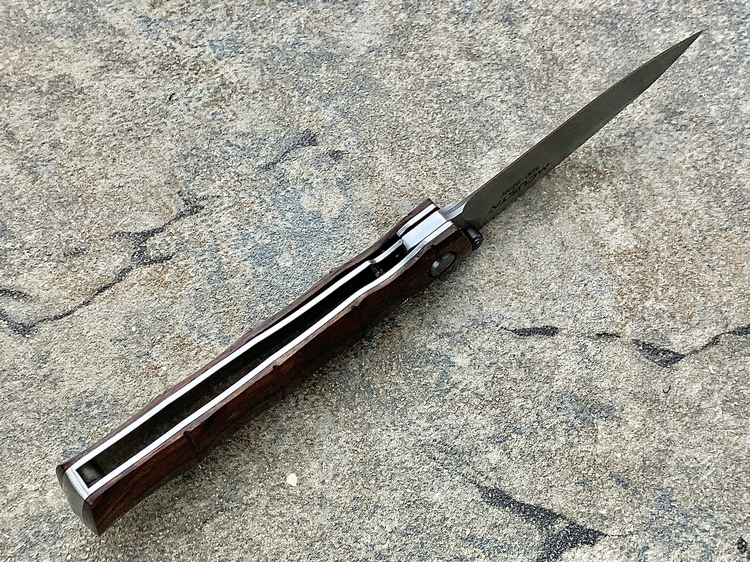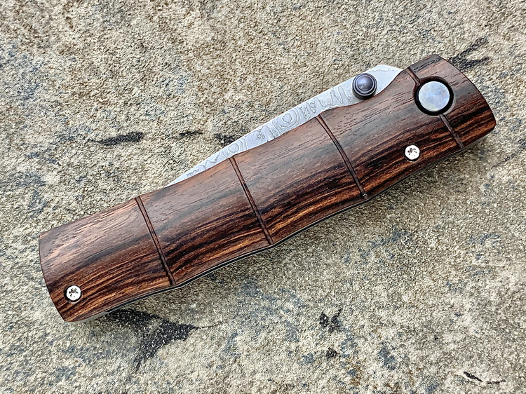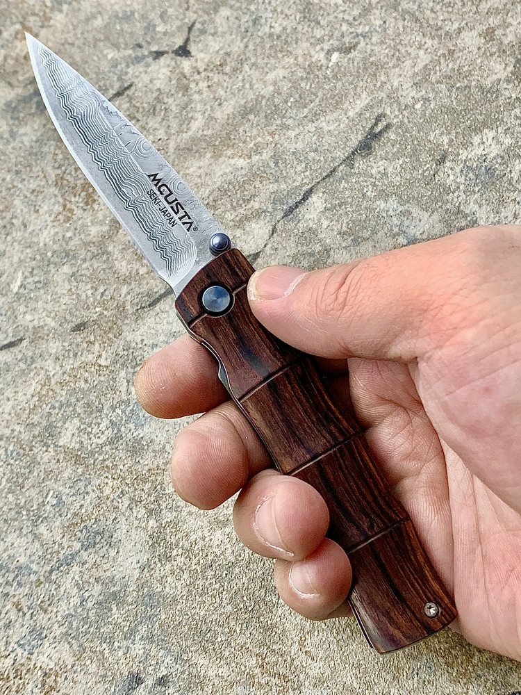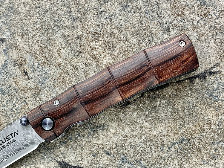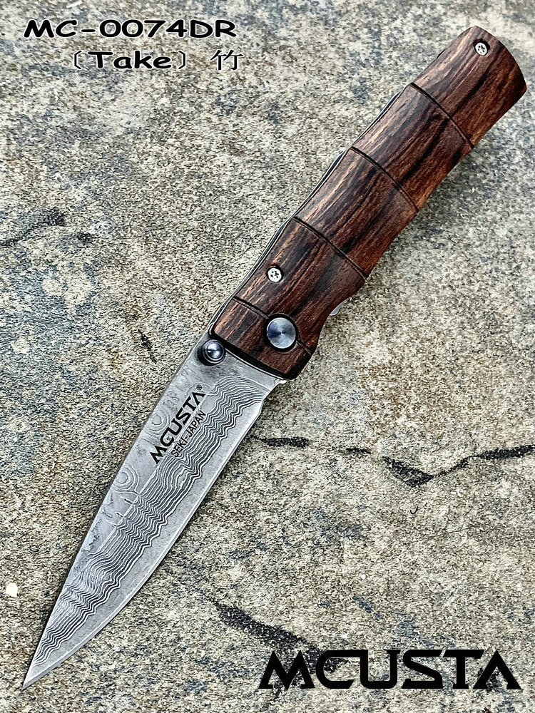 MC-0074DR的名称为「竹(Take)」,发音为 Takei,中文意思是「竹」。刀匠使用印度紫檀来做刀柄,并磨刻出竹节外型,纹路逼真细膩,不能不赞叹制刀者的工艺。 另外值得一提的部份,就是随刀附赠的西阵织绢丝刀套。所谓的西阵织,为日本古代贵族、上流社会专用的丝绸织品,色彩豔丽、图桉丰富。刀套背面缝有腰带环,可以穿在皮带上便于携带。有了西阵织刀套,更加衬托刀子的美。 MCUSTA为日本关市的丸章工业株式会社所创立的新品牌.它的名称是由 “Machine Custom”所延伸出来,意思就是结合日本传统工艺,杰出人员技术以及高科技制造机械等,来生产更加精良的刀品。 MCUSTA品牌风格融合东西方元素,刀品结构简单,易于使用。丸章工业坚持所出品的刀款必须具有高品质、高艺术价值,但是以平易近人的价格贩卖,让爱刀人士能轻易的收集到心目中最好的刀。