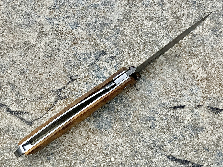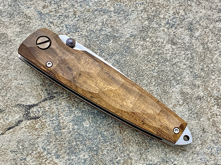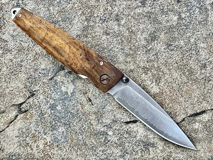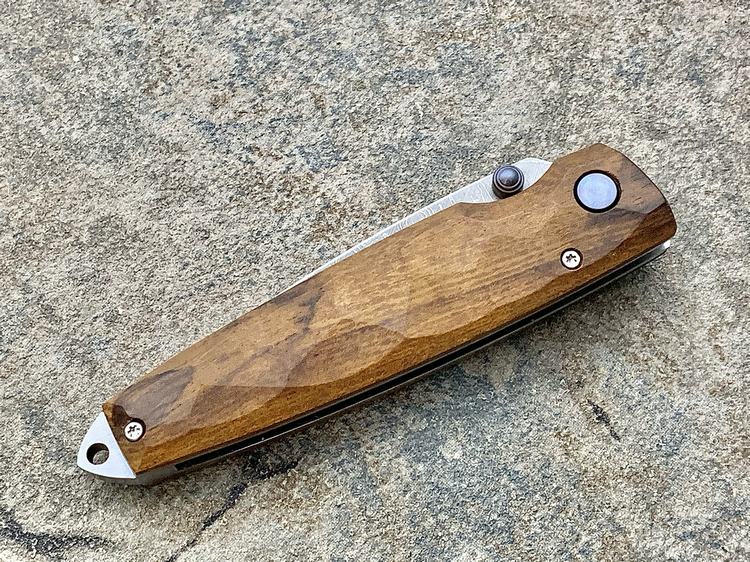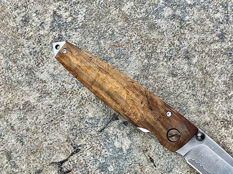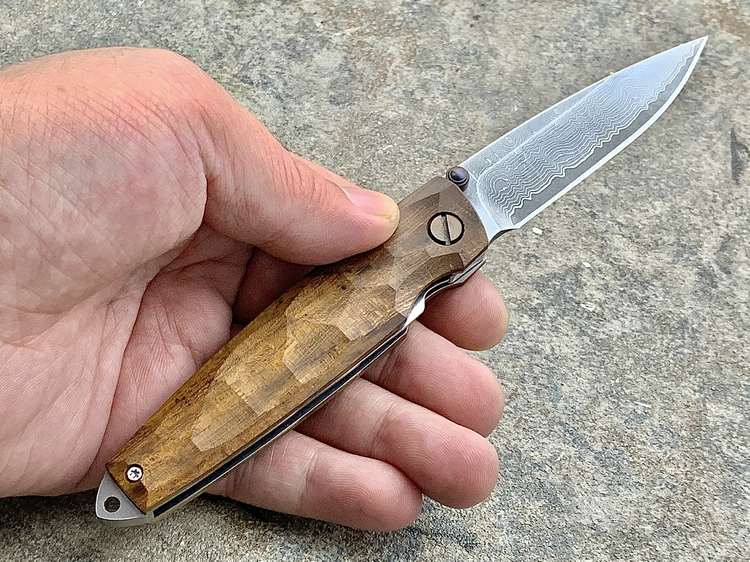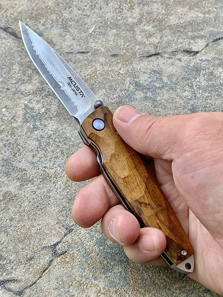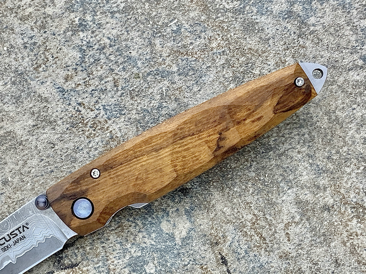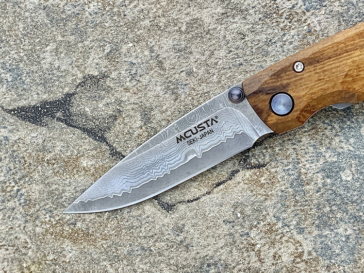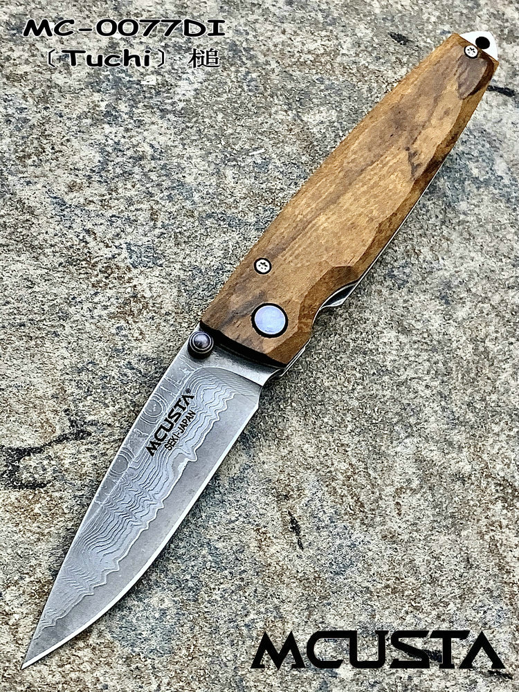 MC-0077DI的名称发音为 Tsuchi,中文意思是「槌」。铁木柄,经过打磨,犹如经过大锤使力敲打,产生自然的凹痕。凹凸不平的柄面,配合大马士革钢的渐层,传递着雄厚的阳刚气势。 另外值得一提的部份,就是随刀附赠的西阵织绢丝刀套。所谓的西阵织,为日本古代贵族、上流社会专用的丝绸织品,色彩豔丽、图桉丰富。刀套背面缝有腰带环,可以穿在皮带上便于携带。有了西阵织刀套,更加衬托刀子的美。 MCUSTA为日本关市的丸章工业株式会社所创立的新品牌.它的名称是由 “Machine Custom”所延伸出来,意思就是结合日本传统工艺,杰出人员技术以及高科技制造机械等,来生产更加精良的刀品。 MCUSTA品牌风格融合东西方元素,刀品结构简单,易于使用。丸章工业坚持所出品的刀款必须具有高品质、高艺术价值,但是以平易近人的价格贩卖,让爱刀人士能轻易的收集到心目中最好的刀。