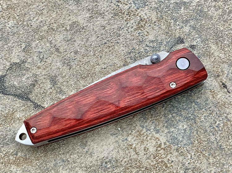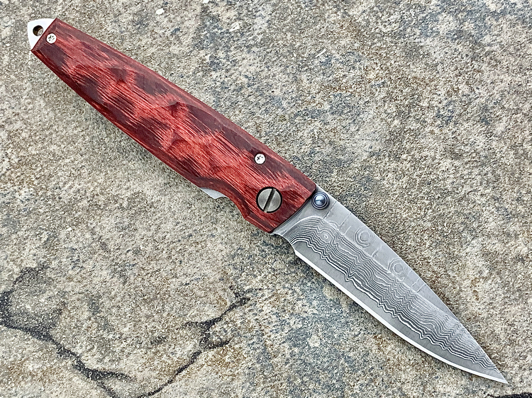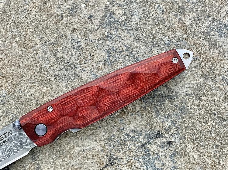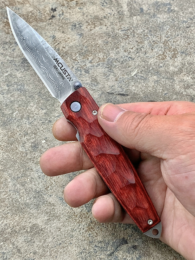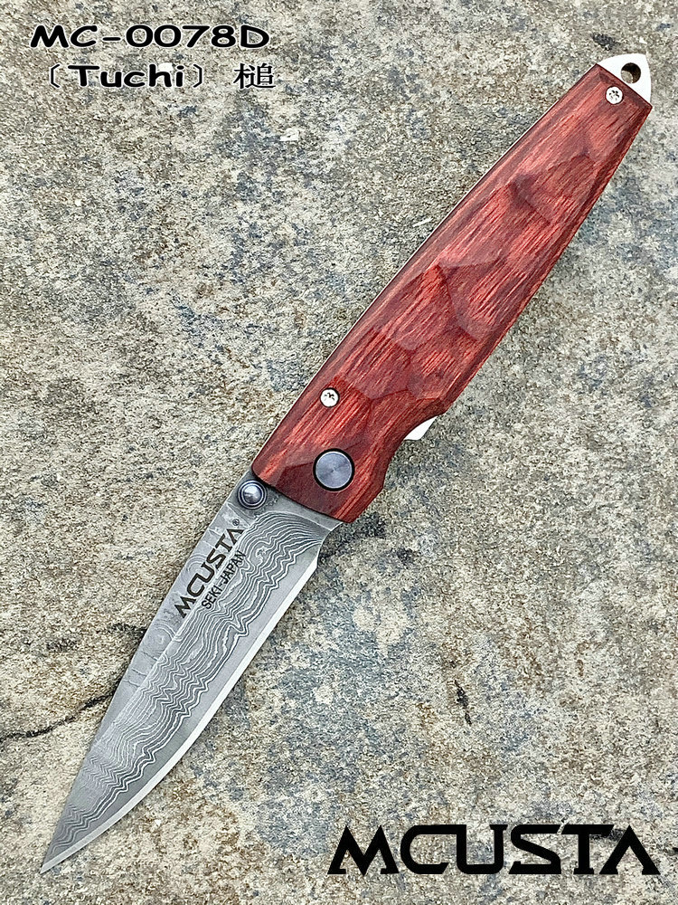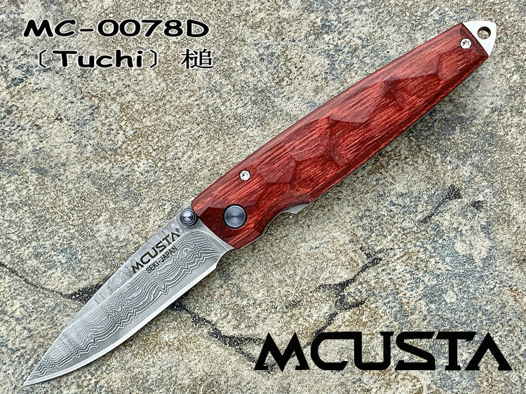 MC-0078D的名称发音为 Tsuchi,中文意思是「槌」。Staminawood柄,经过打磨,犹如经过大锤使力敲打,产生自然的凹痕。凹凸不平的柄面,配合大马士革钢的渐层,传递着雄厚的阳刚气势。 另外值得一提的部份,就是随刀附赠的西阵织绢丝刀套。所谓的西阵织,为日本古代贵族、上流社会专用的丝绸织品,色彩豔丽、图桉丰富。刀套背面缝有腰带环,可以穿在皮带上便于携带。有了西阵织刀套,更加衬托刀子的美。 MCUSTA为日本关市的丸章工业株式会社所创立的新品牌.它的名称是由 “Machine Custom”所延伸出来,意思就是结合日本传统工艺,杰出人员技术以及高科技制造机械等,来生产更加精良的刀品。 MCUSTA品牌风格融合东西方元素,刀品结构简单,易于使用。丸章工业坚持所出品的刀款必须具有高品质、高艺术价值,但是以平易近人的价格贩卖,让爱刀人士能轻易的收集到心目中最好的刀。