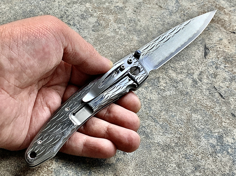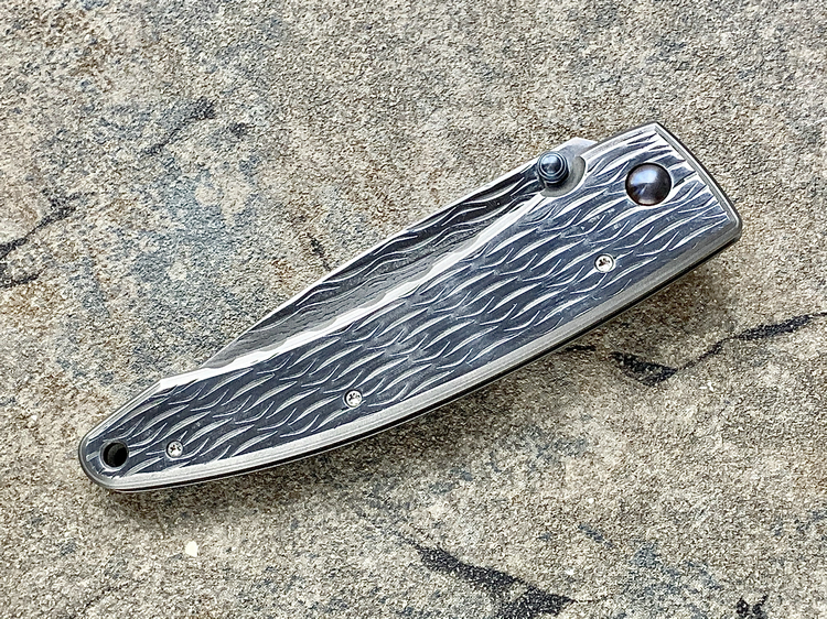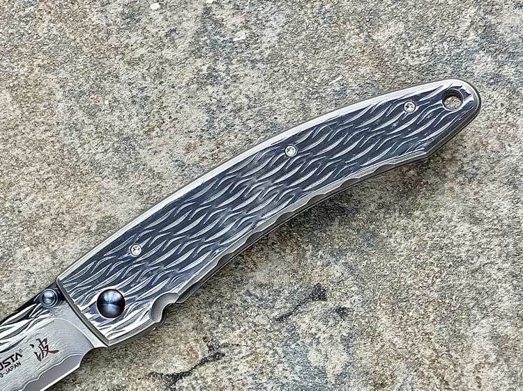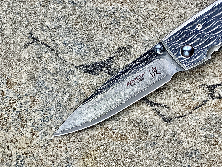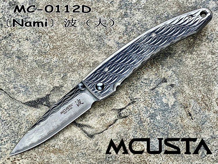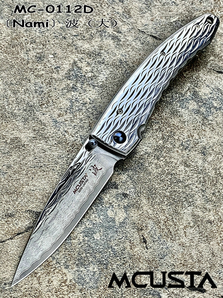 MC-0112D及MC-0111D的名称为「波」,发音为” Nami”,中文意思是「波」。420J2钢柄,经过特殊的塑型压工,产生如水波般的纹理,产生自然的凹痕。凹凸不平的柄面,配合大马士革刀刃,散发出优美流畅的气息。