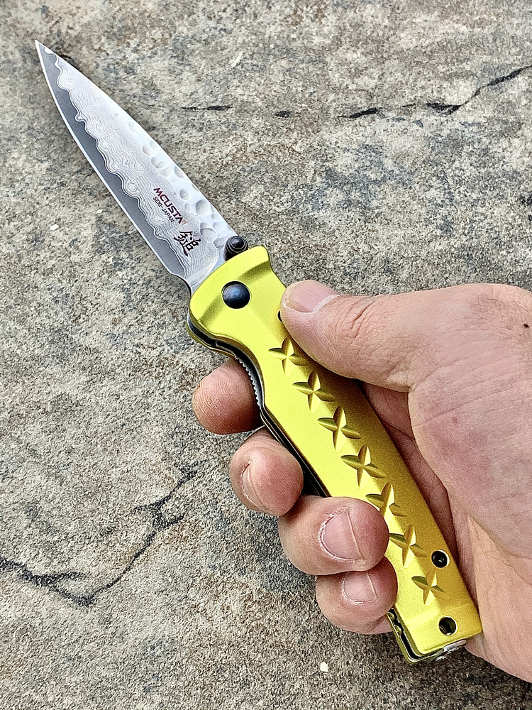 简单描述: MCUSTA 传世家徽 MC-0164D FUSION 武士 VG-10核心大马士革刃材 铝合金柄 绅士折刀