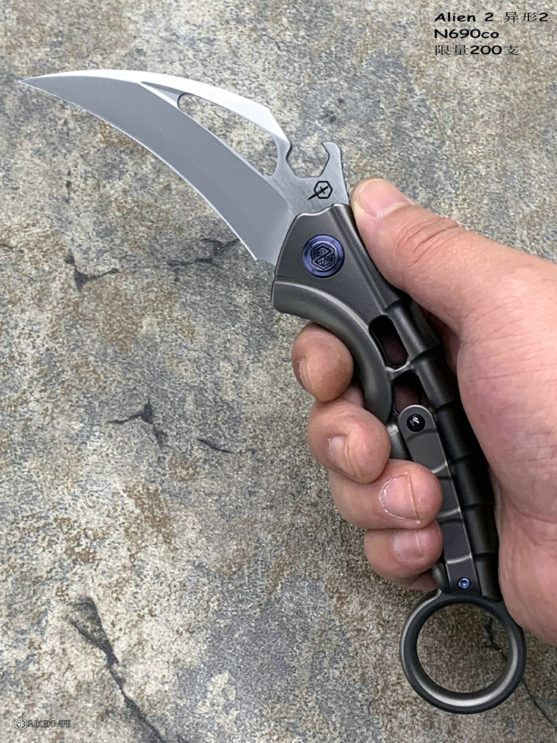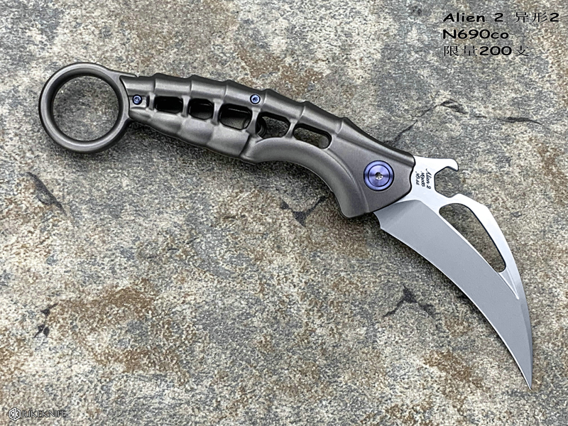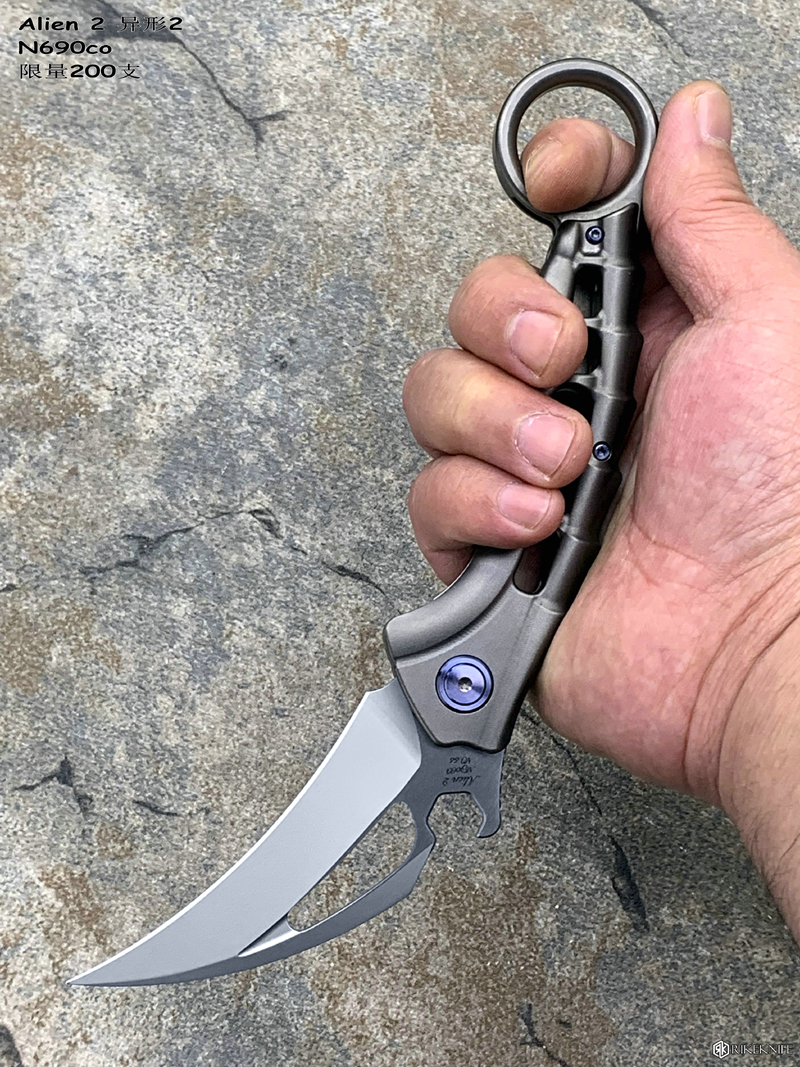 Rike Knife Alien 2 异形2 N690co刃材 钛合金柄 Flipper快开 快开钩 原色战术折叠爪刀(现货)