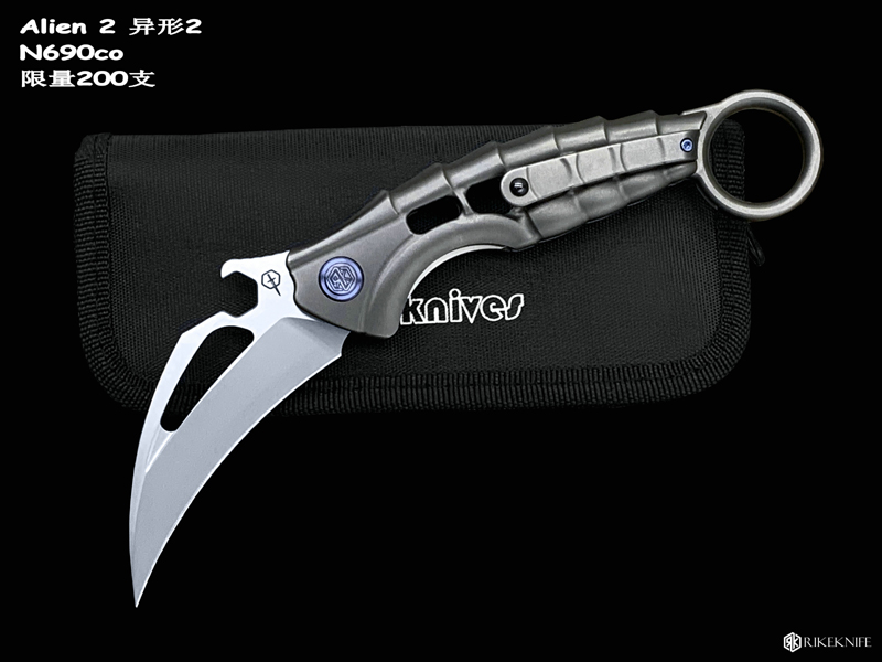 Rike Knife Alien 2 异形2 N690co刃材 钛合金柄 Flipper快开 快开钩 原色战术折叠爪刀