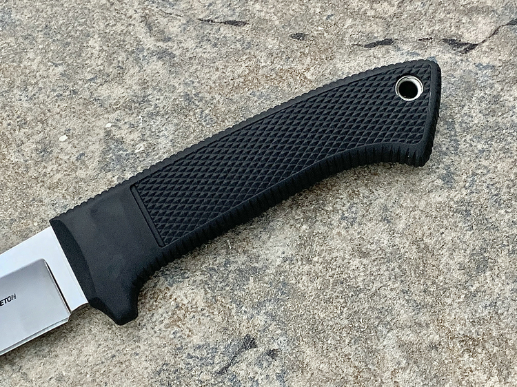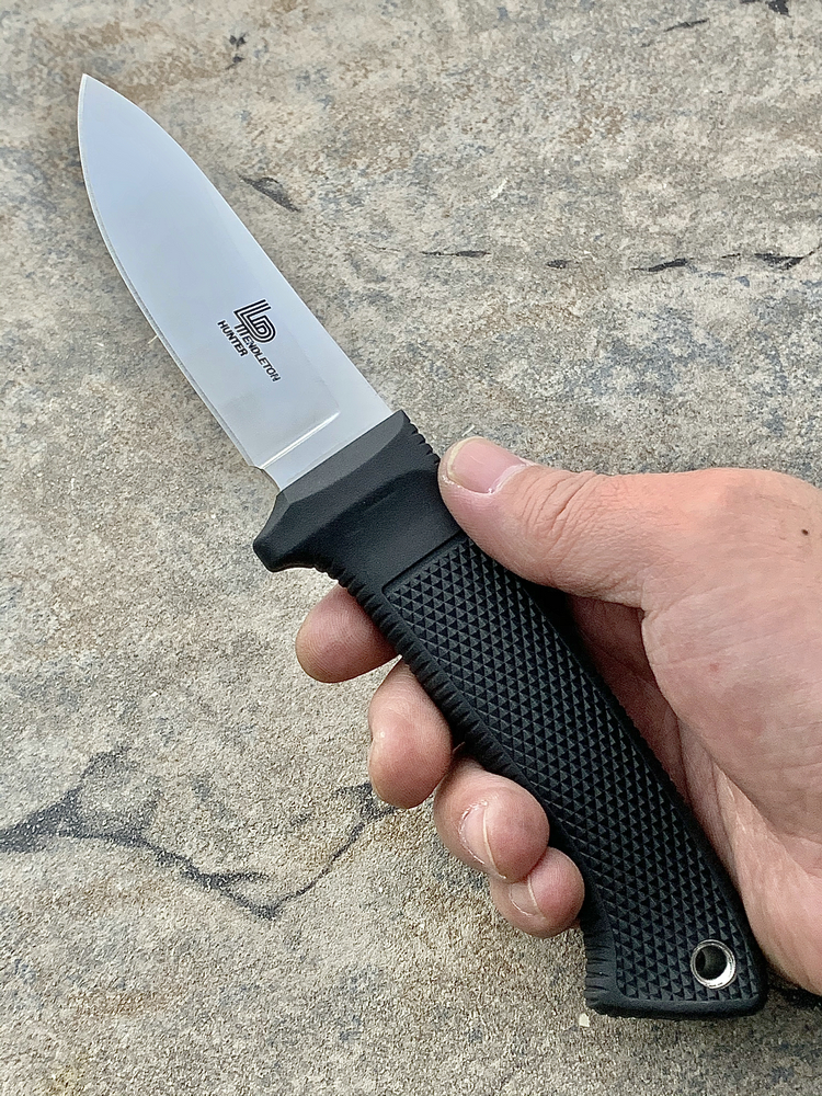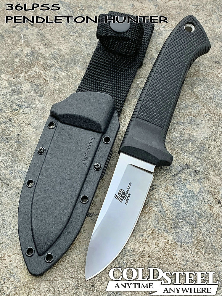 Cold Steel的总裁Lynn Thompson,在1973年时买了一把Lloyd Pendleton所订制的刀。现在,这两位好朋友一起合作,设计出这把Pendleton Hunter。为了精准呈现当年Lloyd Pendleton的精湛工艺,Cold Steel在刀刃与刀柄上着墨不少。而为了安全性与耐久性,这次改采特殊塑料材质制作刀鞘,比起过去的皮革套,具有防腐、不长霉的优点。本款为日本制造。