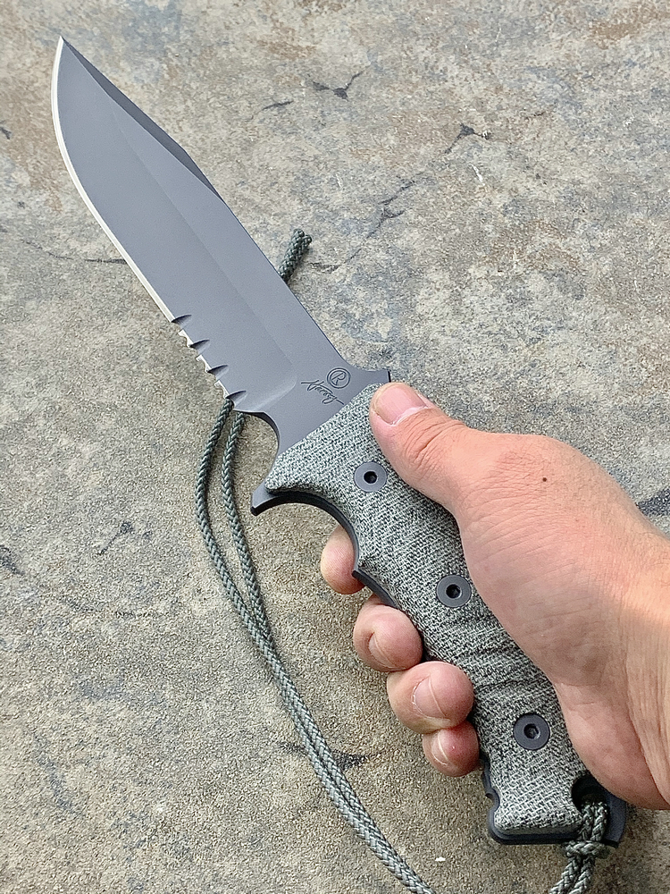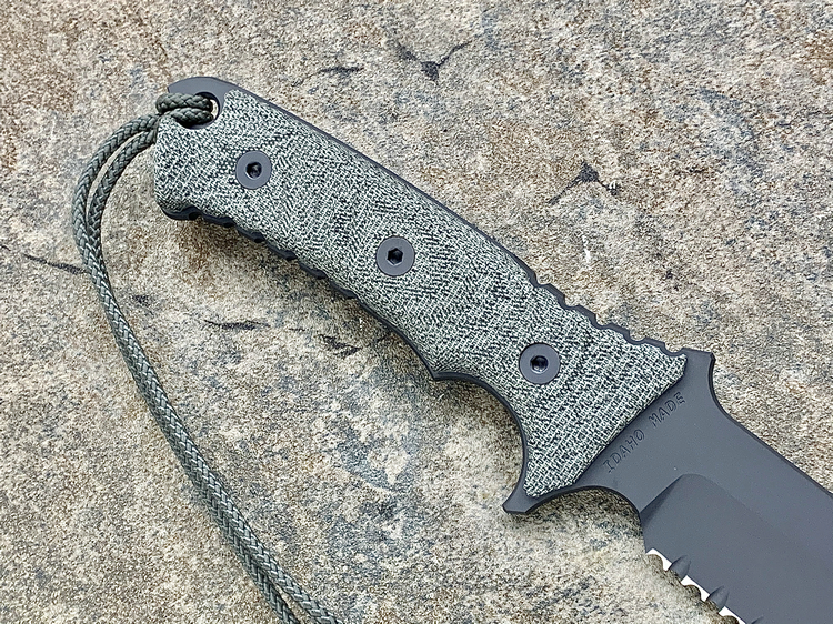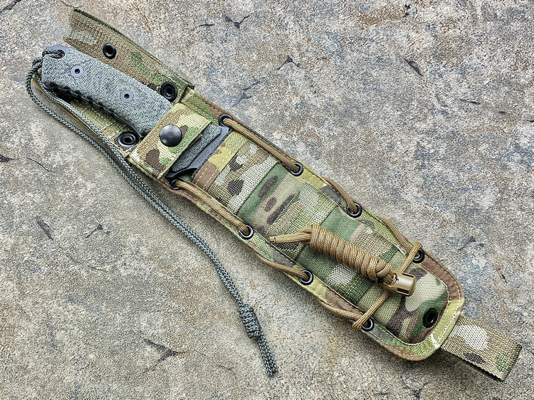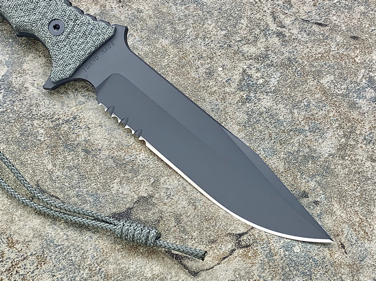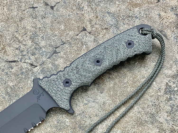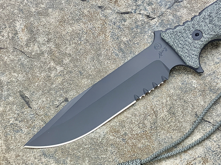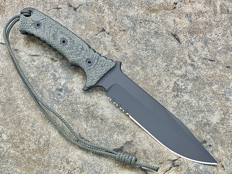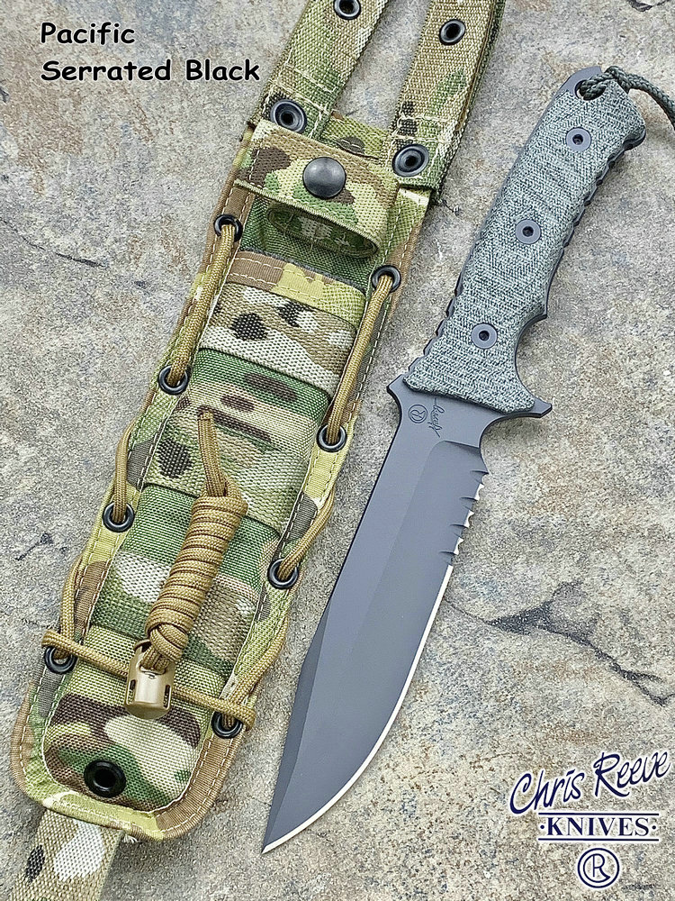 原产地: 美国 Chris Reeve刀厂自从亚伯拉罕/绿扁帽战斗刀获得成功后, 然后, 尼尔.罗伯兹勇士战斗刀到2007年现在制作了这款全新的战斗刀'太平洋战斗刀'- 这款全新的'太平洋战斗刀'是一把简单的战术刀。长度为6寸,是非常中庸的尺寸。这个长度兼顾了野外生存及日常工作使用,刀子设计没有任何花哨的地方,而手柄则非常人体工程化,防脱手绳, 手柄还增加了等高线防滑纹,这样可以确保海军在黑暗和湿滑的环境中,也能有良好地使用,而战术刀鞘则是转由美国做战术刀鞘最有水准的SPECIAL OPS公司负责制作,刀鞘可以完全符合MOLLE装备系统。 Chris Reeve 太平洋战斗刀 ,继续使用高级S35VN粉末钢,更为纯净,微量金属混合更均匀充分,所以防锈性极其高。刀刃经过热处理,达到57HRC的硬度,非常坚韧,刀锋保持性很好,同时容易磨利。 减少两倍的锯齿状为增加更大的切割而设计,更方便切割绳索,刀刃全表面加上航天高科技 Kalguard 黑灰色亚光烤镀涂层,它能够为刀刃提供全面的抗腐蚀保护。