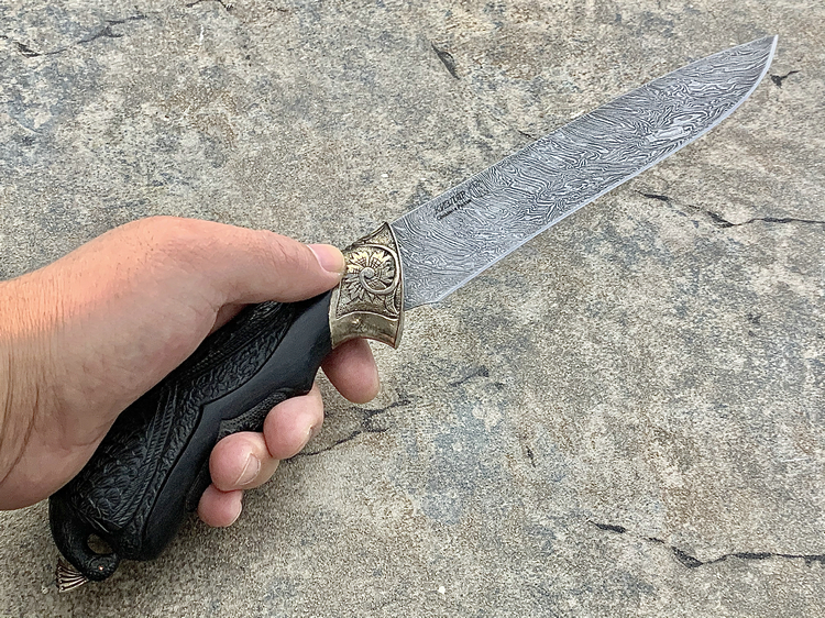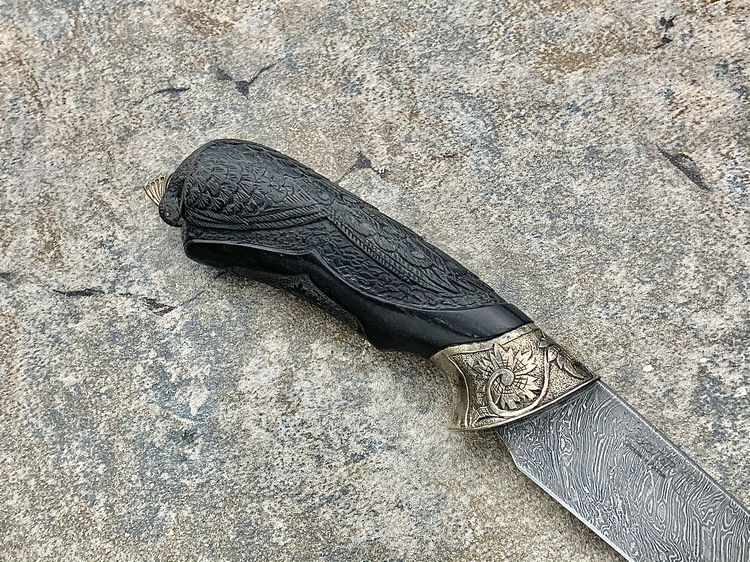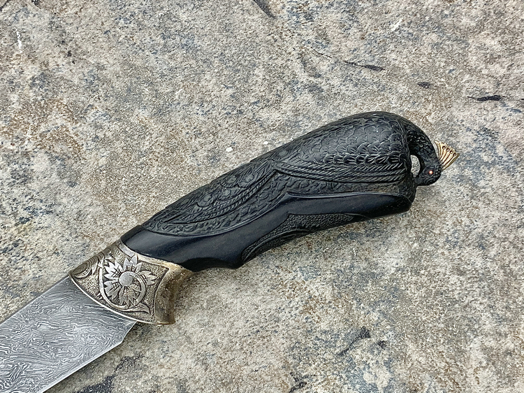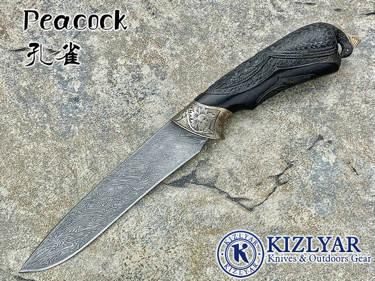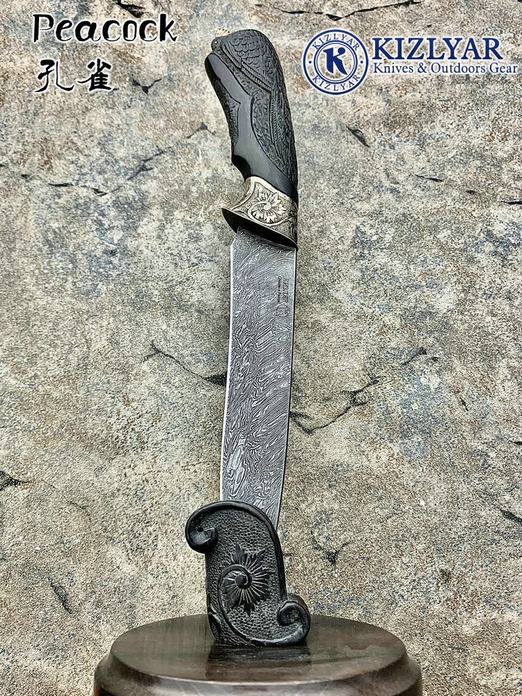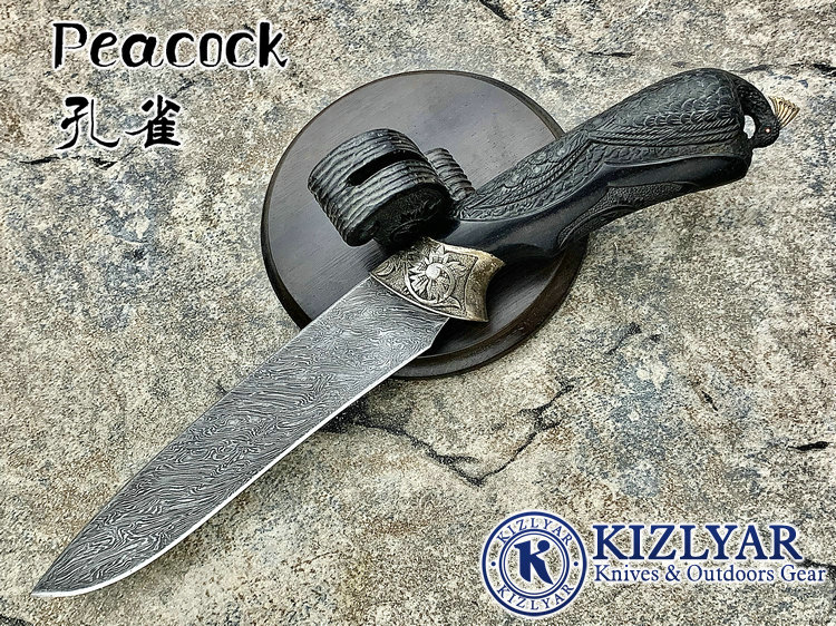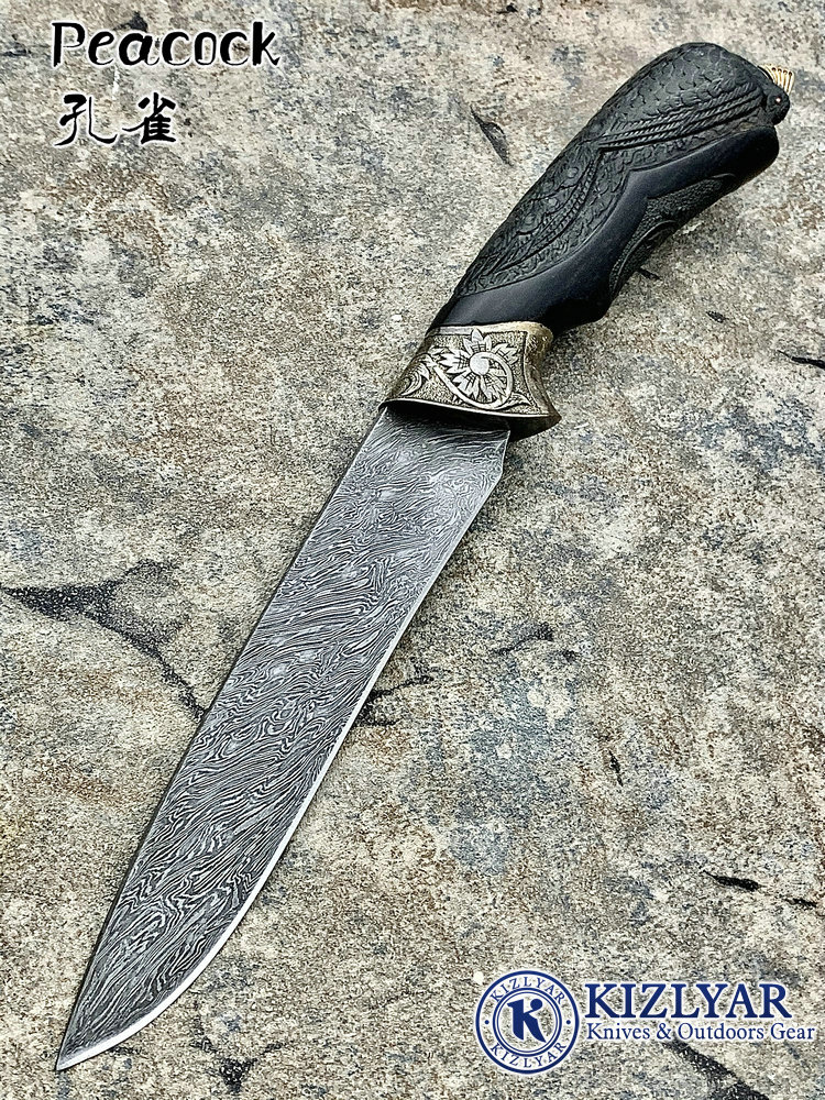kizlyar俄罗斯基兹利亚尔 Peacock 孔雀 大马士革刃材 铁木柄手工雕刻孔雀 典藏版直刀
