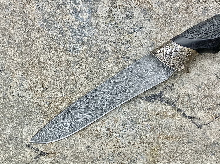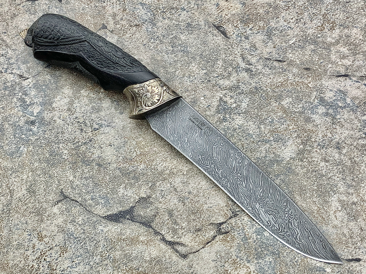kizlyar俄罗斯基兹利亚尔 Peacock 孔雀 大马士革刃材 铁木柄手工雕刻孔雀 典藏版直刀(现货)