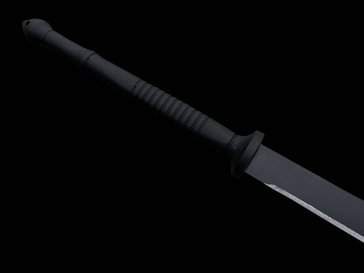 冷钢南非产泰刀,采用1055高碳钢一体锻造表面黑色涂层,手柄为聚丙烯材料防水耐脏易于打理,3mm的厚度足以应对户外劈砍及排障的需求,整刀做工粗犷实为户外活动的首选产品!